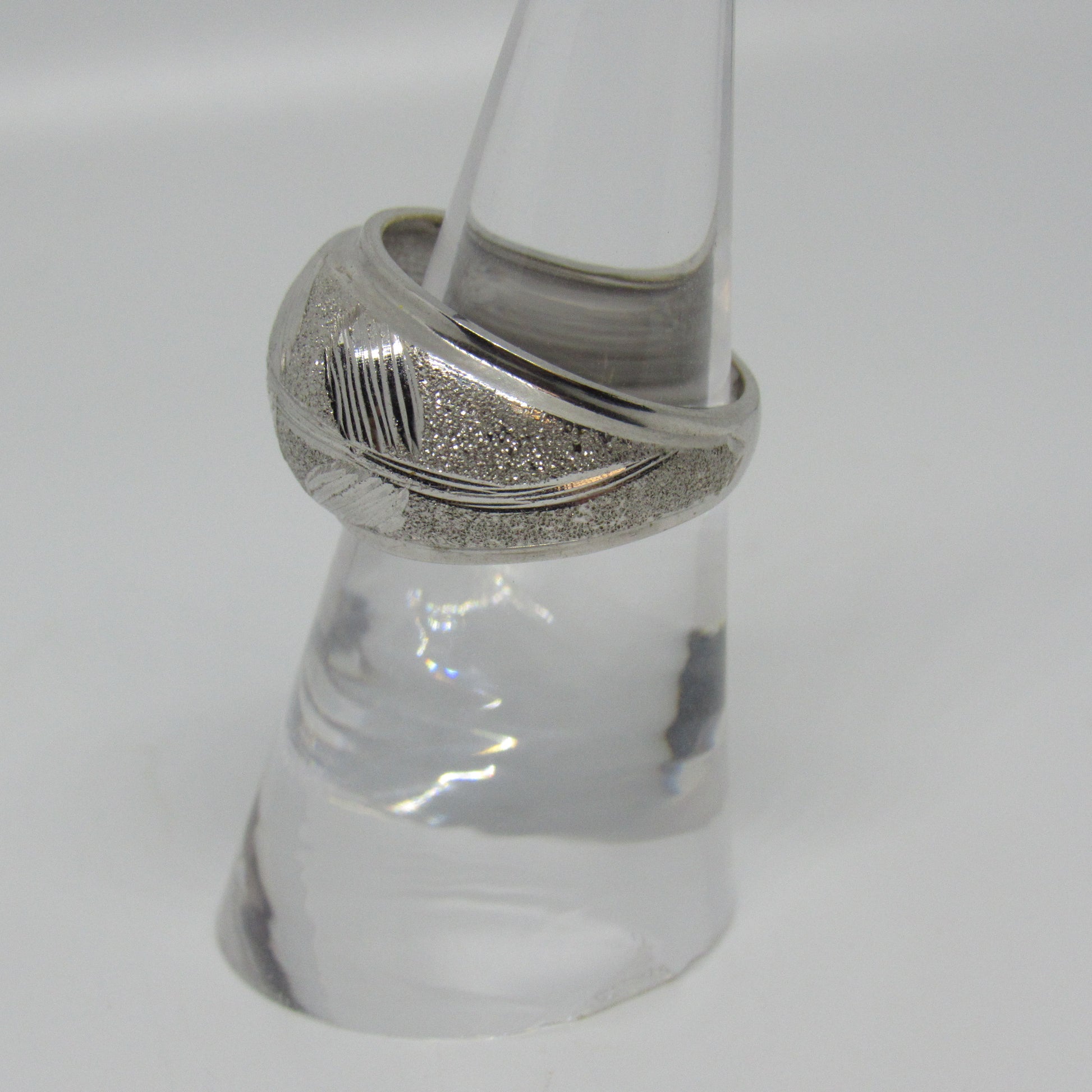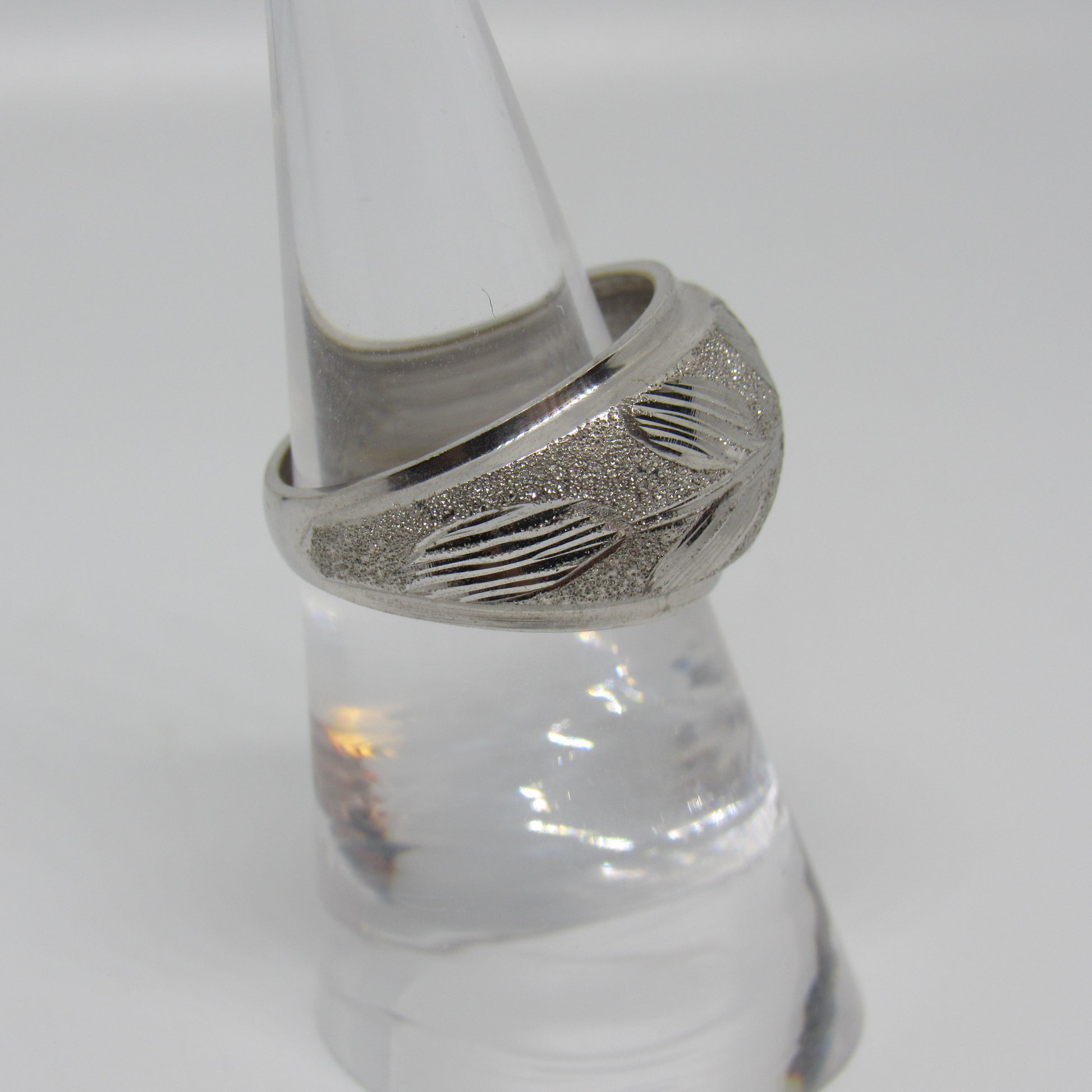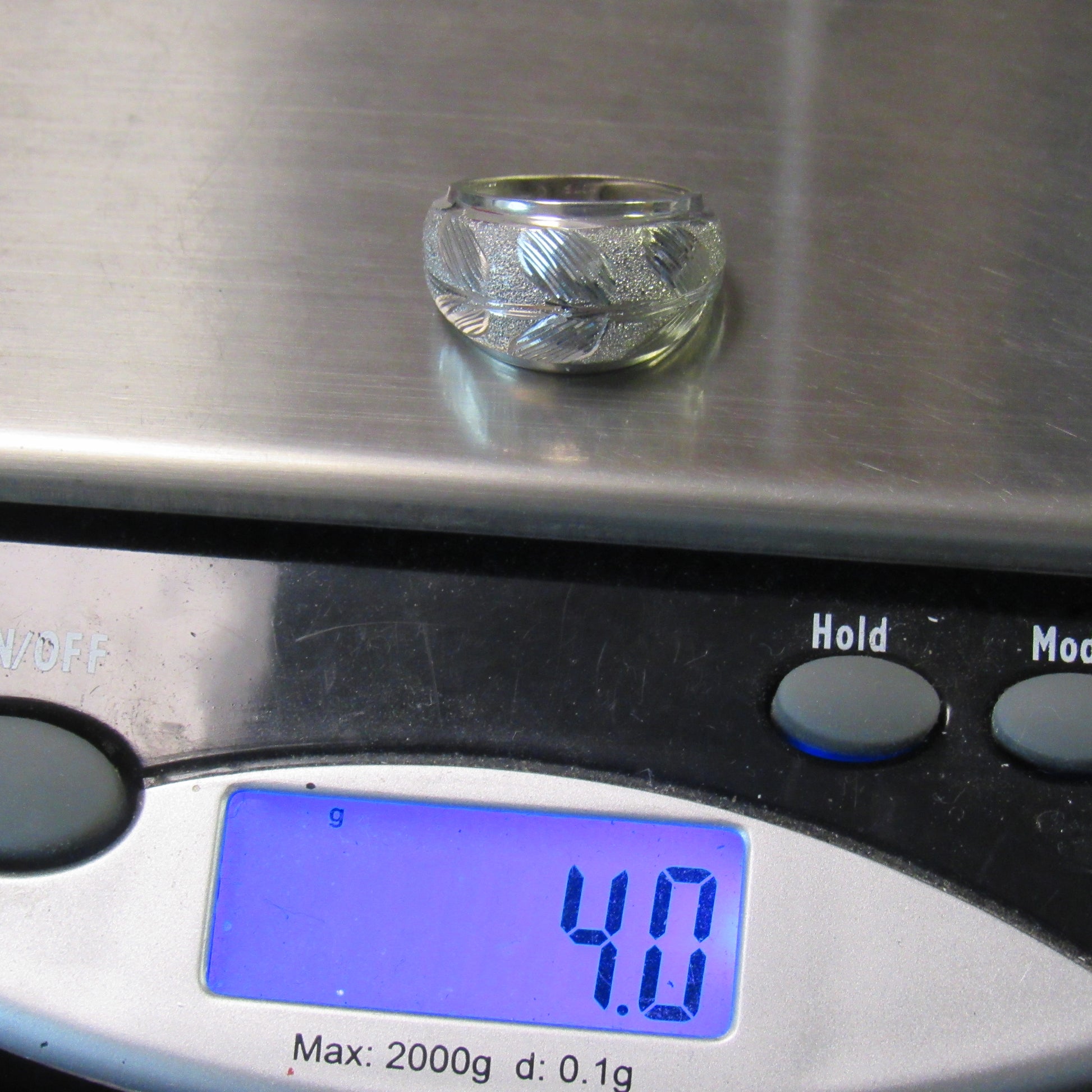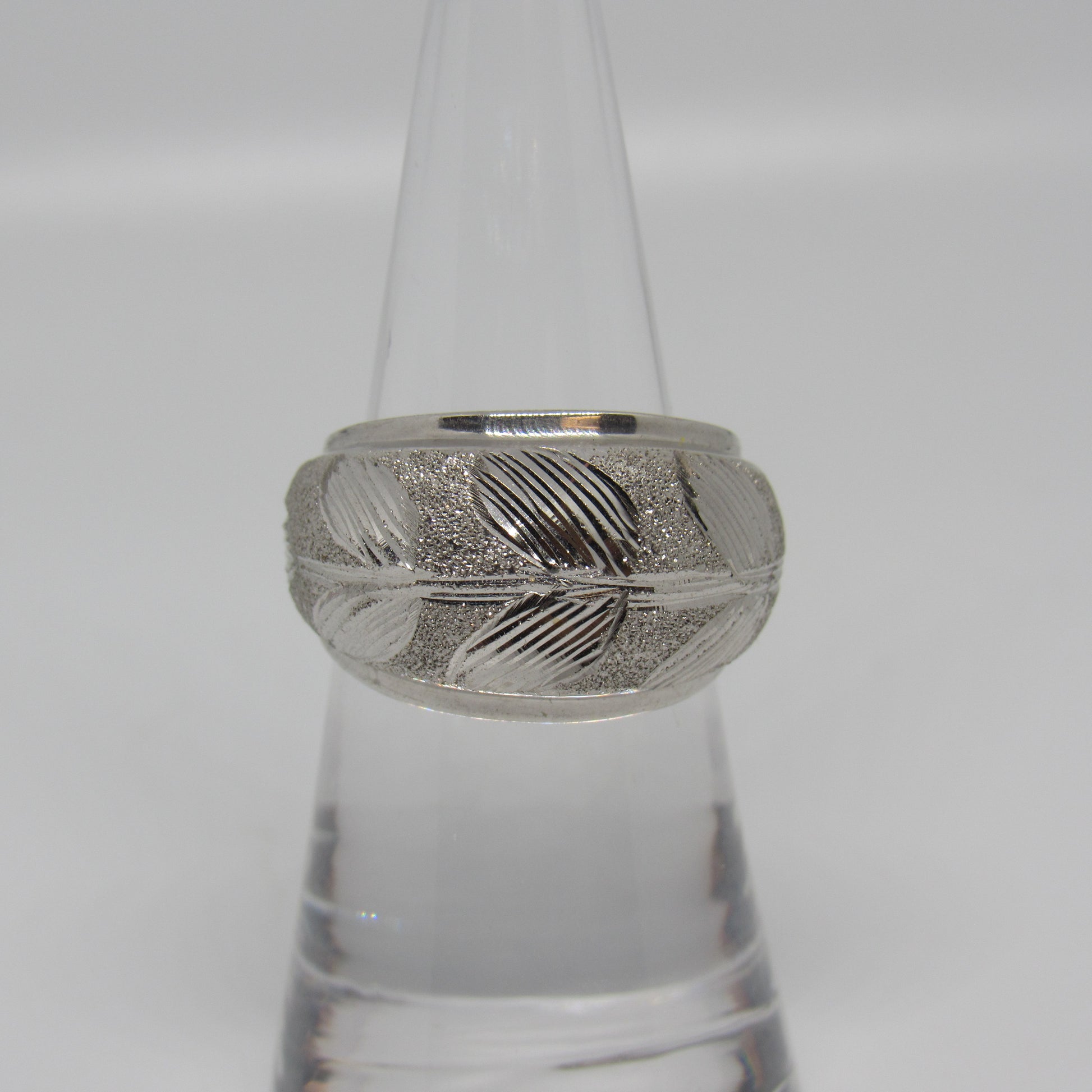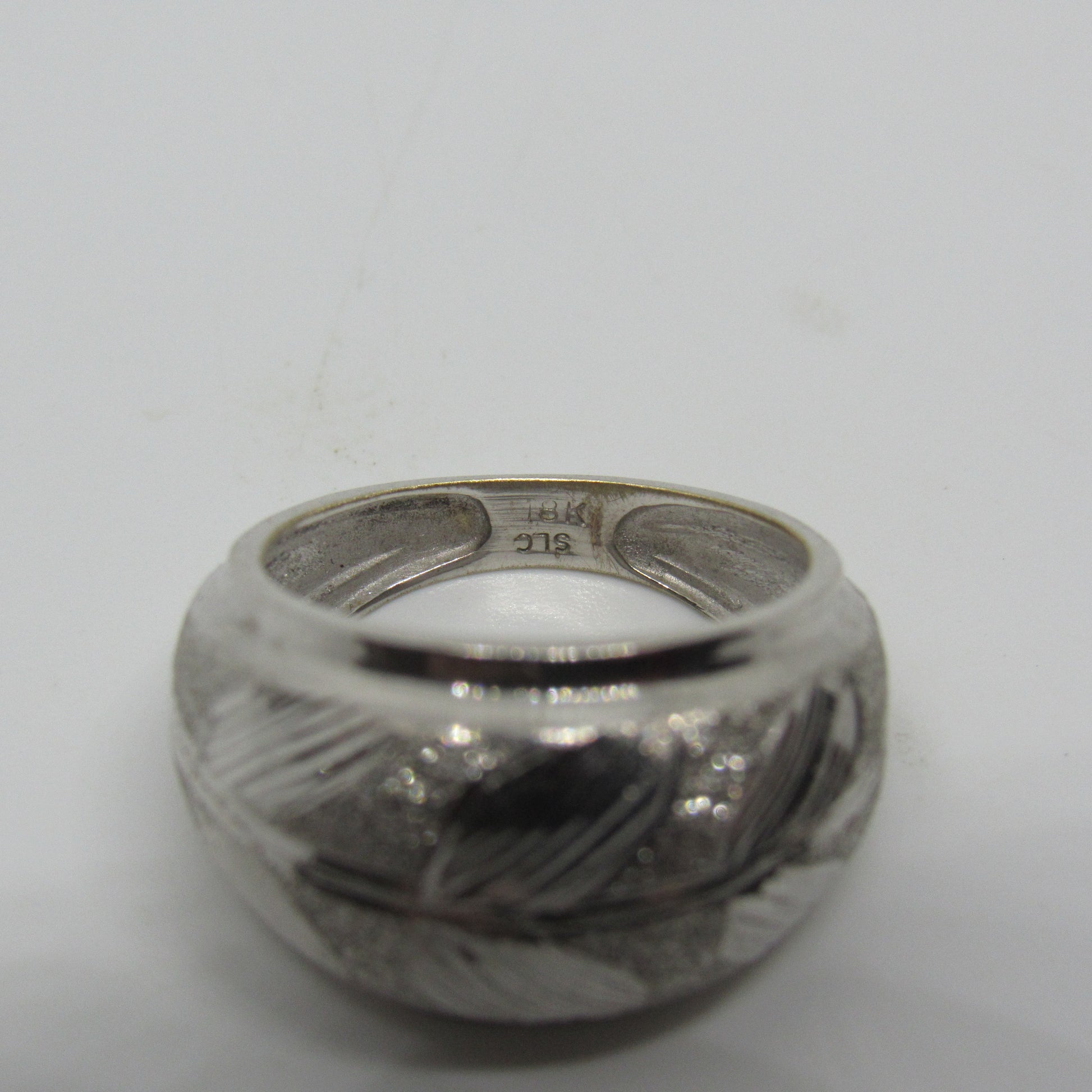 18k White Gold Etched Dome Style Ring - Leaves Vine - Sz 6.25