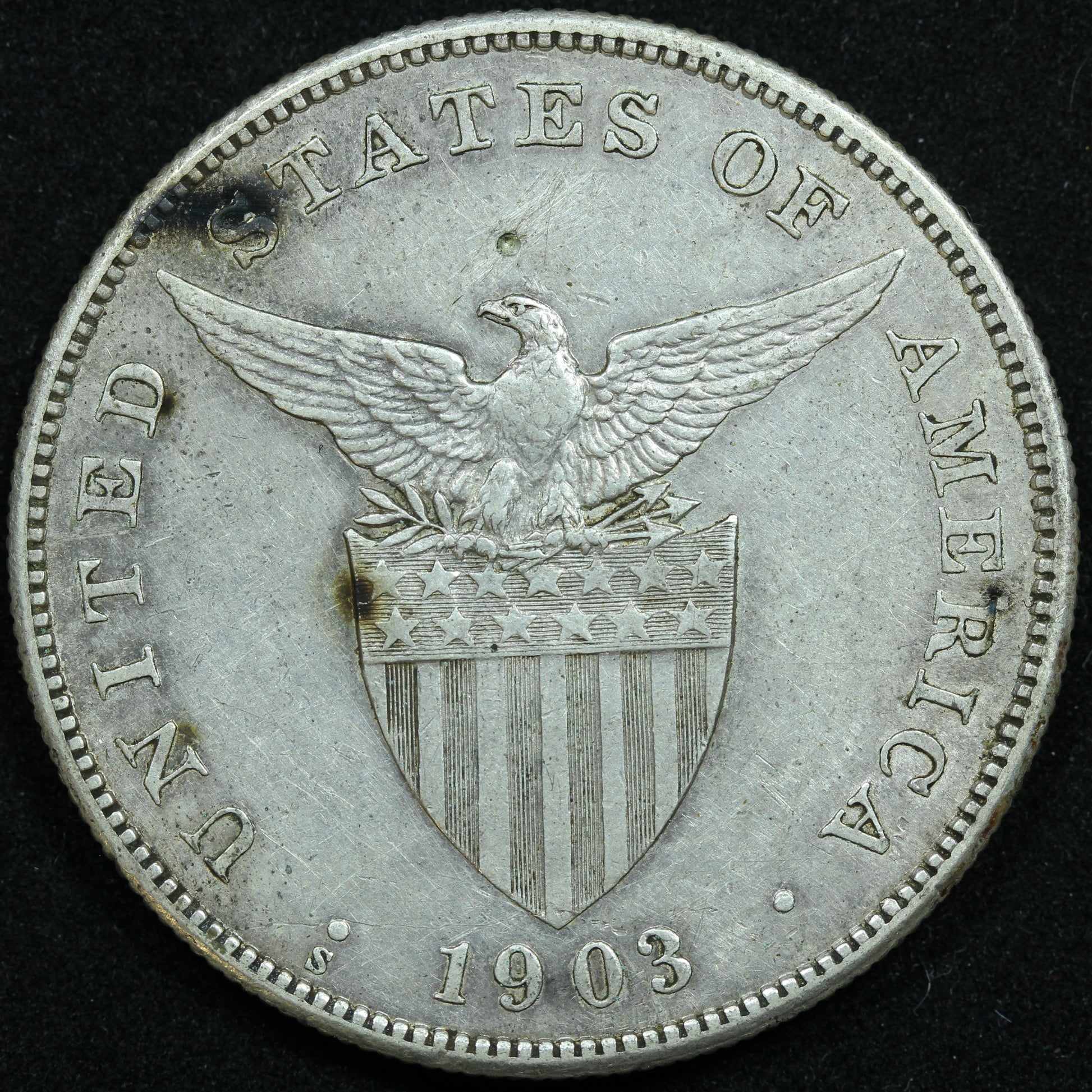 1903 S 1 One Peso Philippines Silver Coin - KM# 168