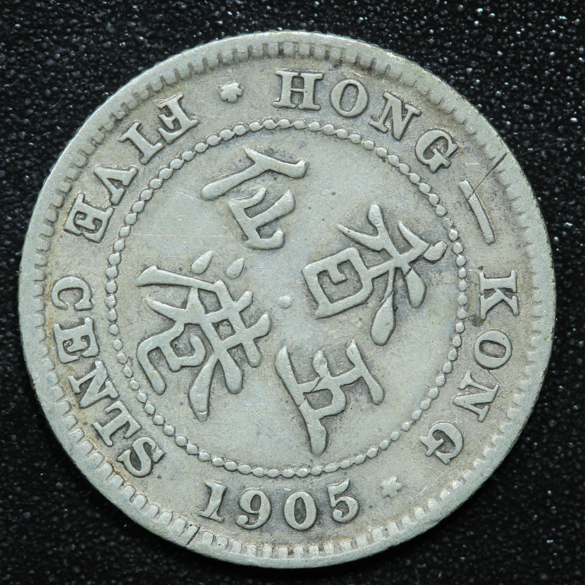 1905 Hong Kong 5 Cents Silver .800 Fine KM#12