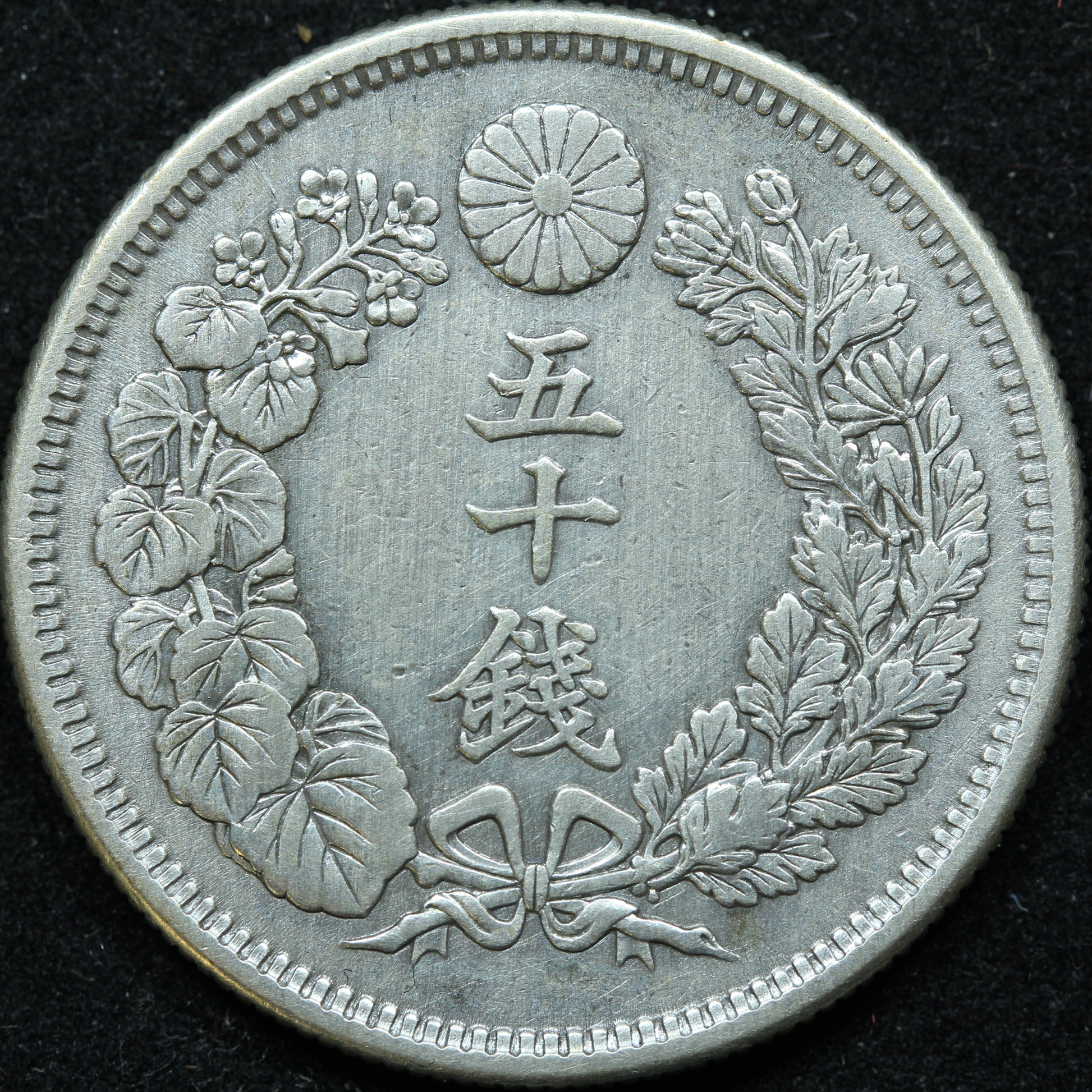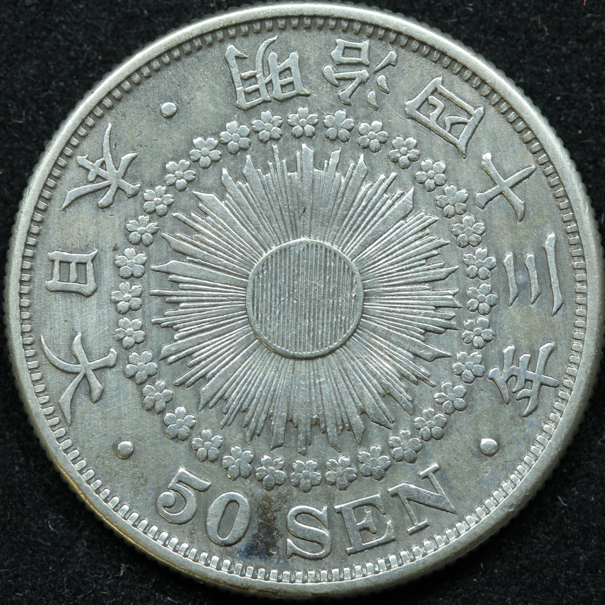 1910 Yr.43 Japan 50 Sen Silver Coin - Y# 31