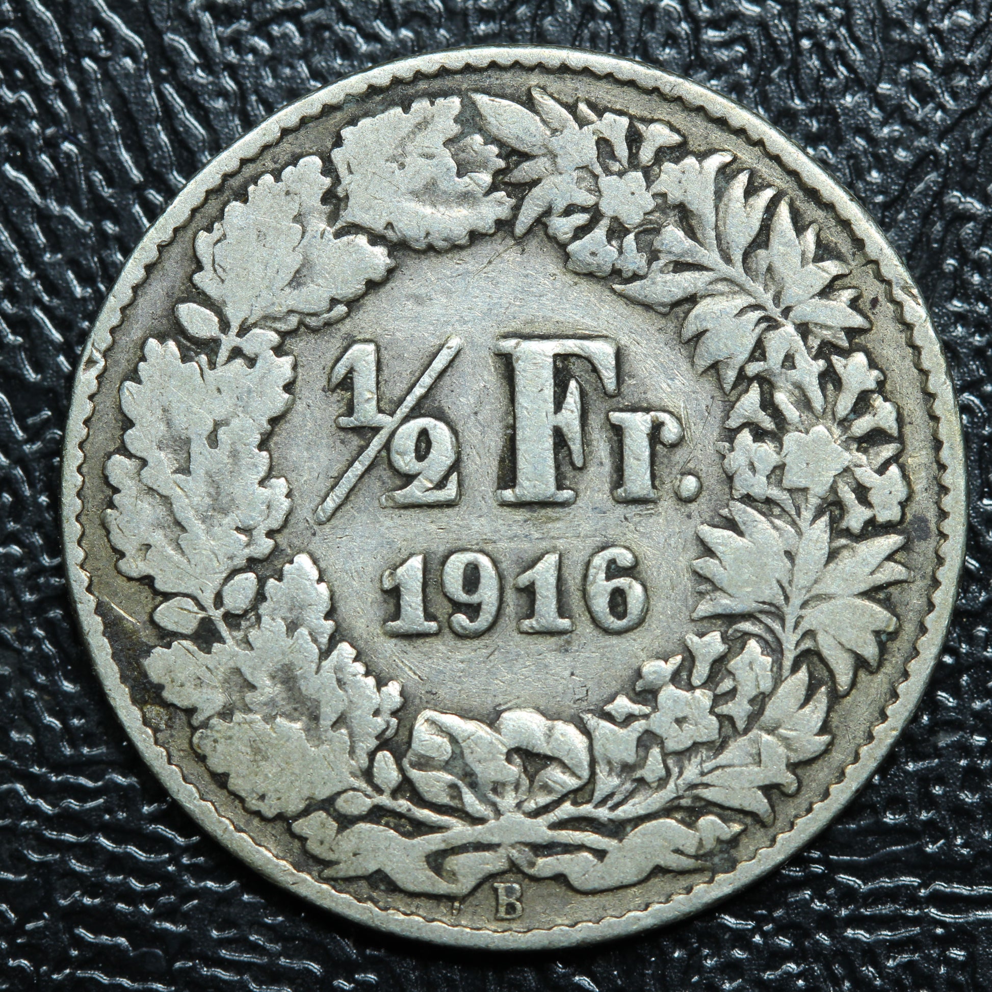 1916 B Switzerland 1/2 FRANC Silver KM#23