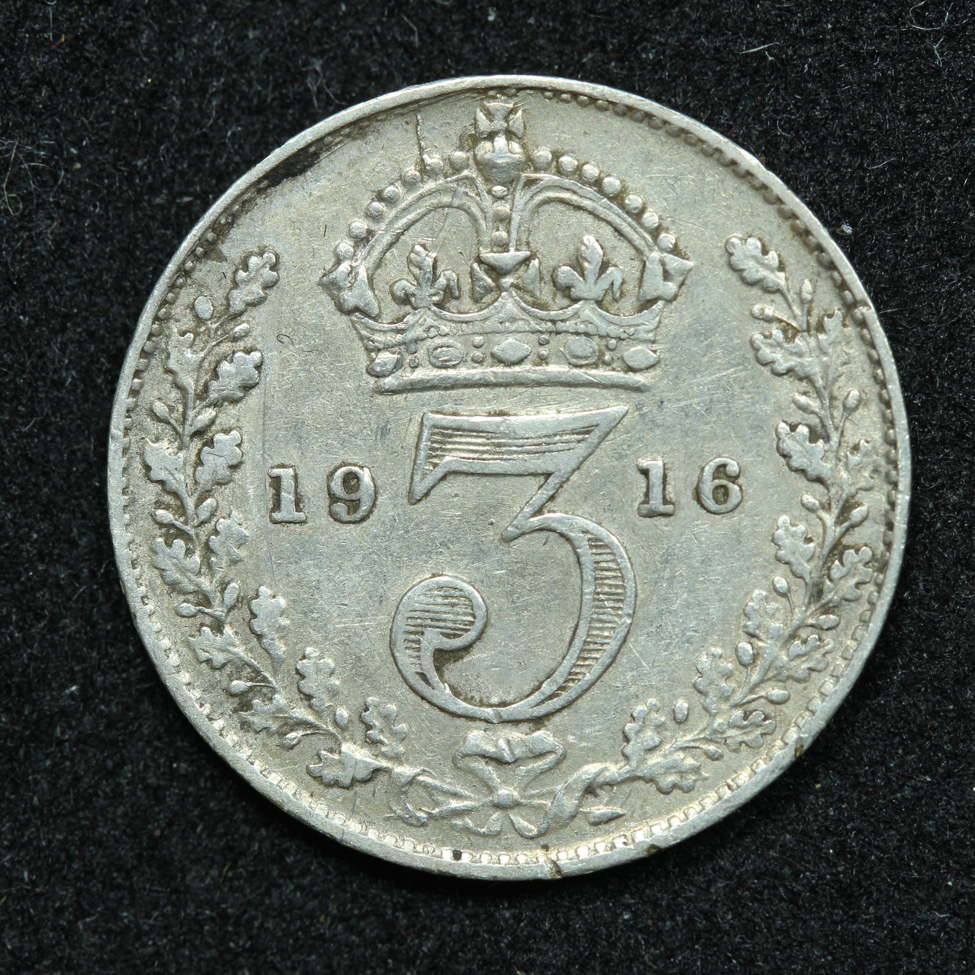1916 Great Britain 3 Pence Threepence Silver Coin - KM# 813