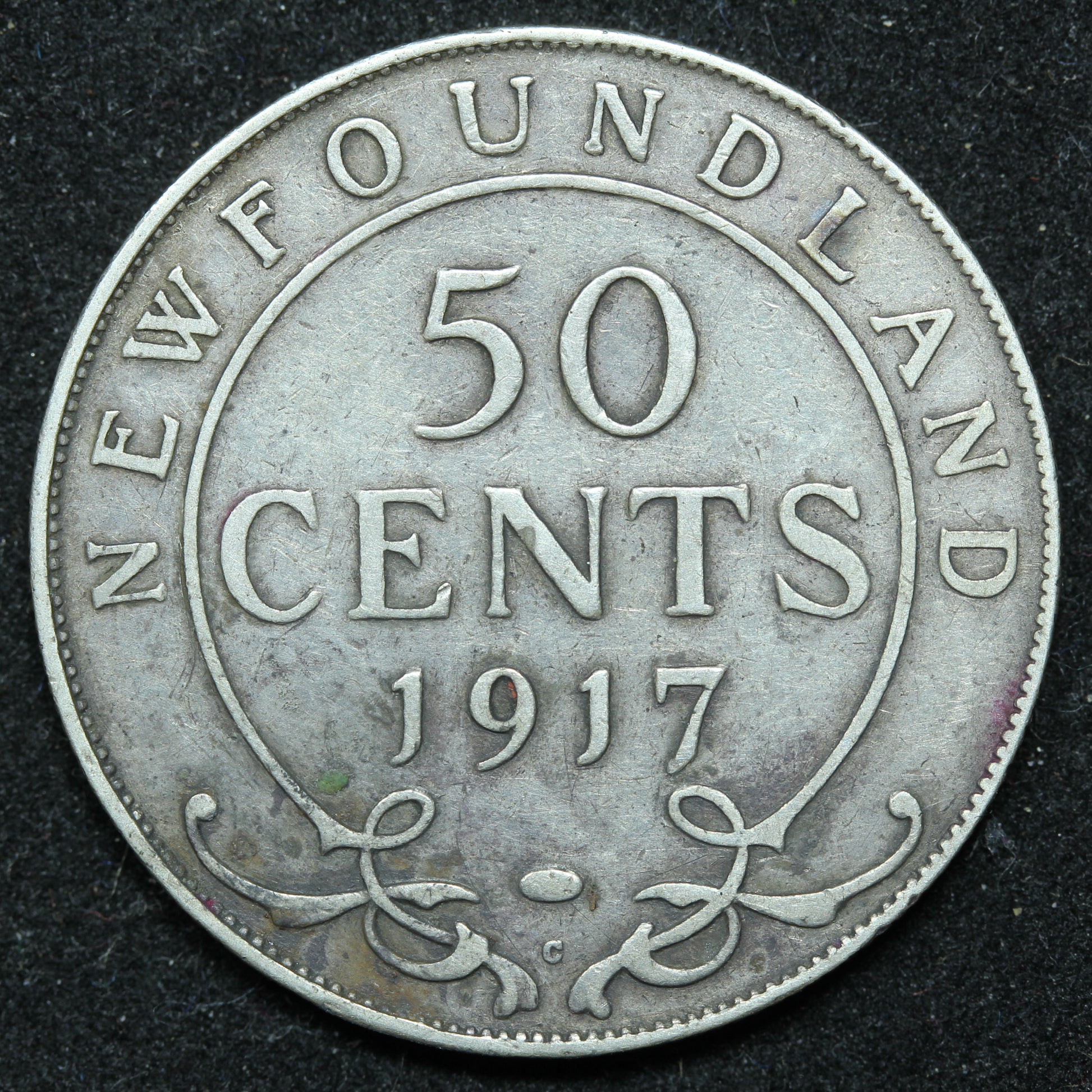 1917 Newfoundland 50 Cents Silver Coin - George V - KM #12