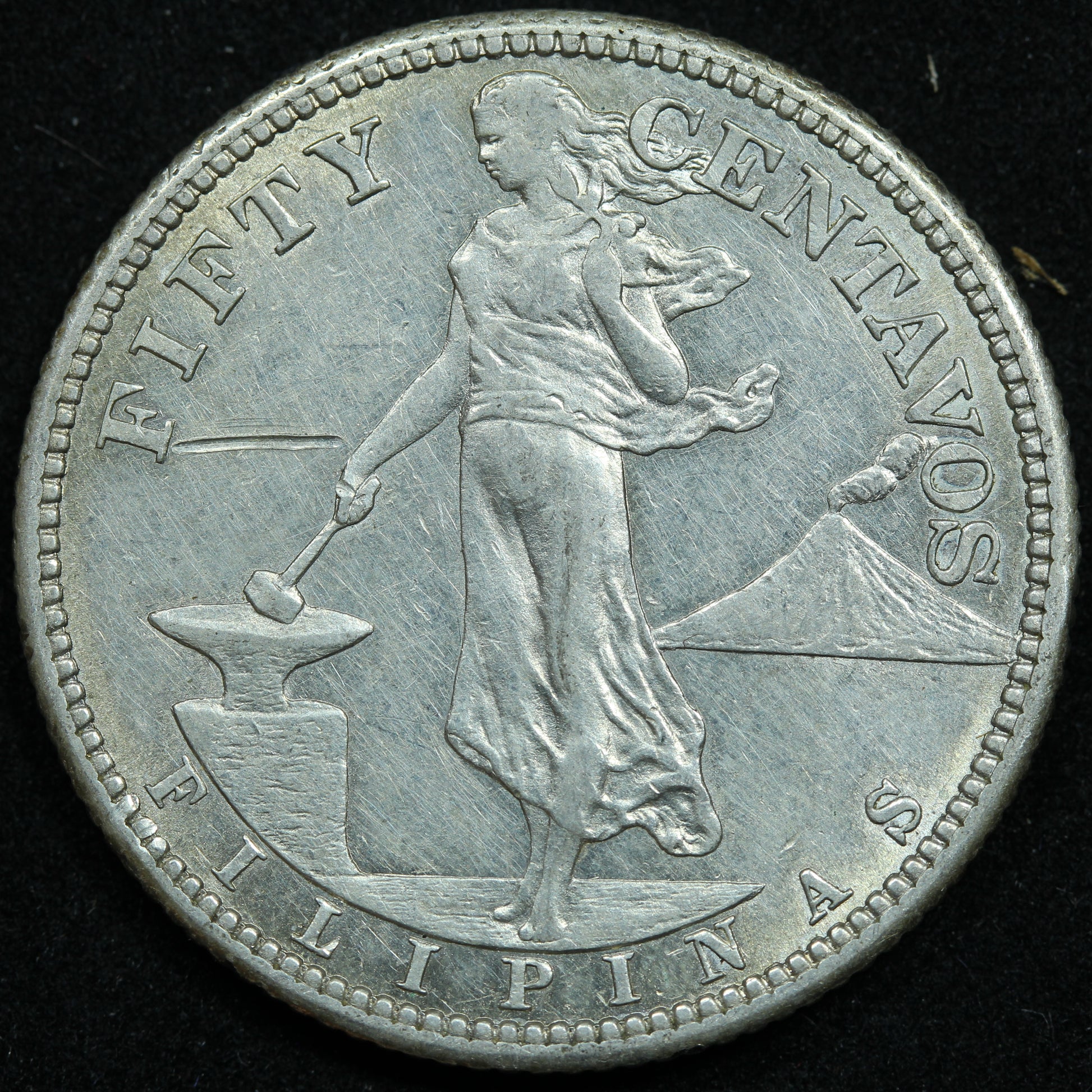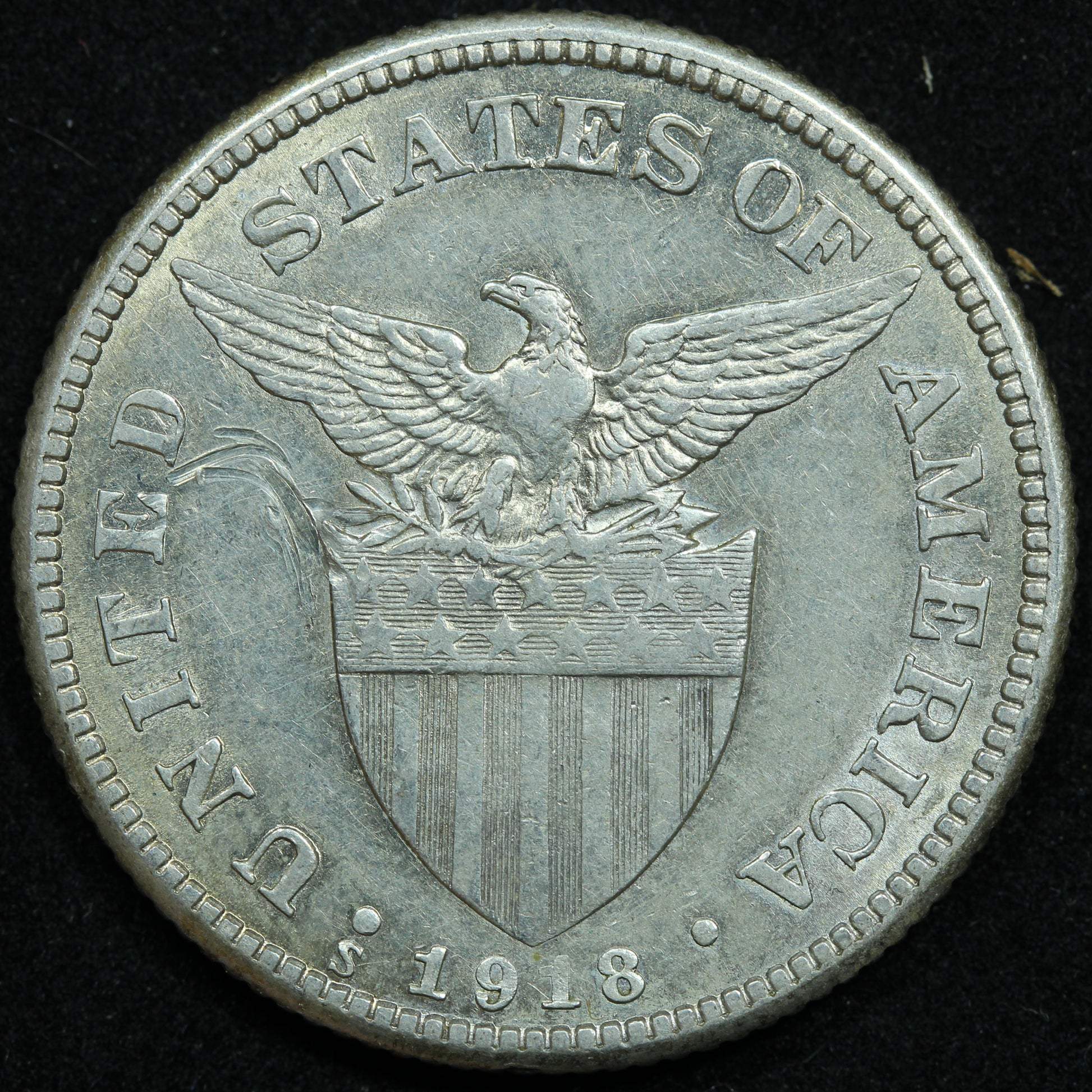 1918 S 50 Centavos Philippines Silver Coin - KM# 171