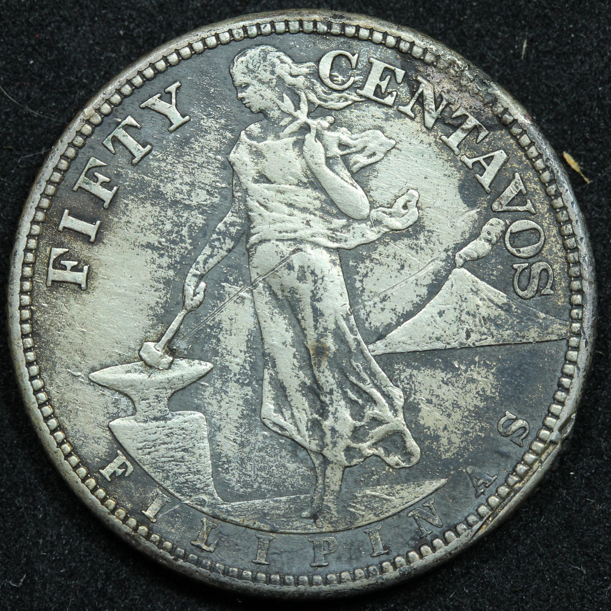 1919 S 50 Centavos Philippines Silver Coin - KM# 171 - Rim Damage