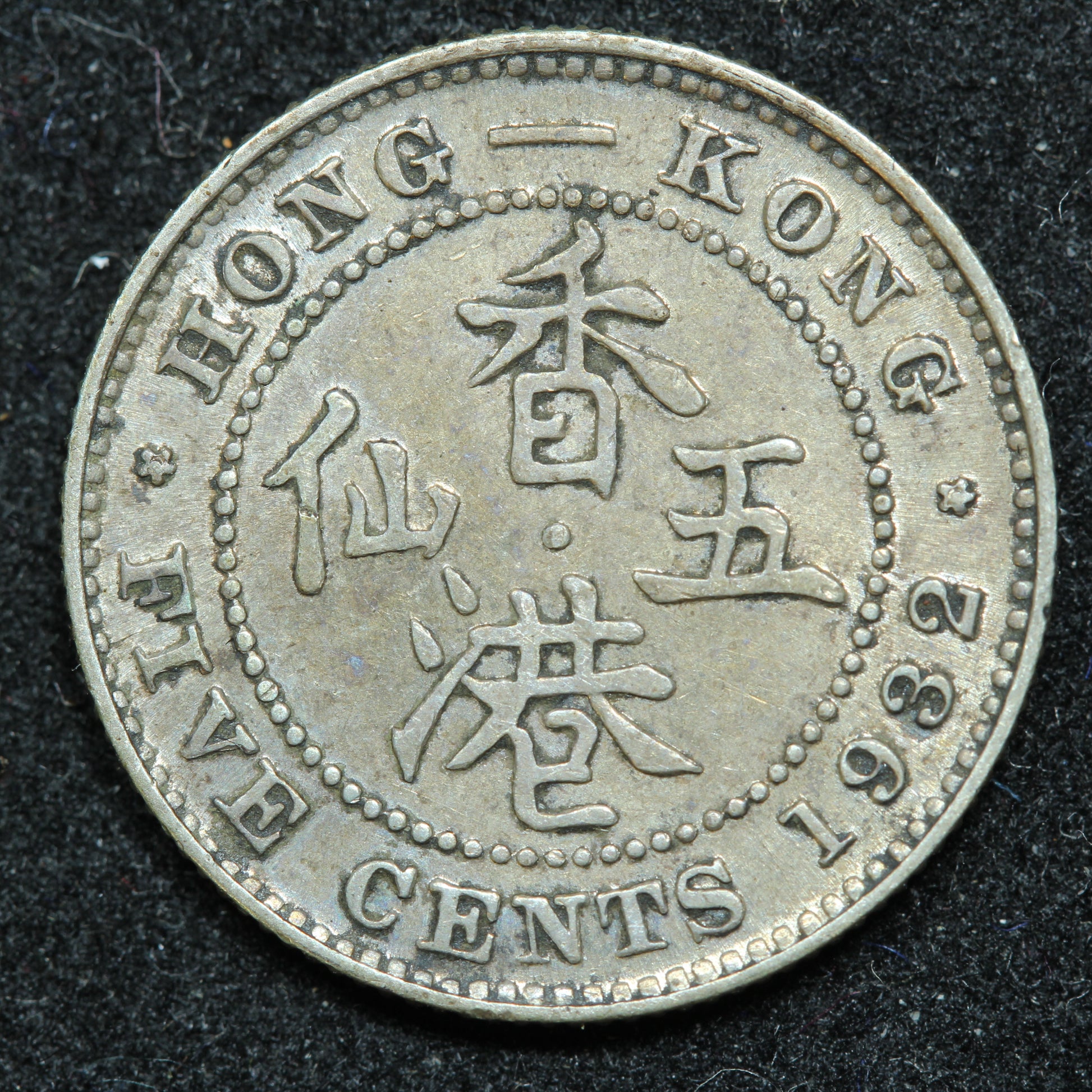 1932 Hong Kong 5 Five Cents Silver .800 Fine KM# 18