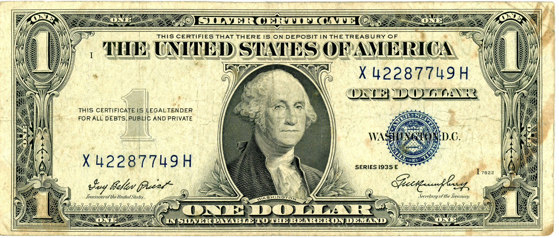 1935 E $1 Silver Certificate Priest Humphrey F-1614 X42287749H