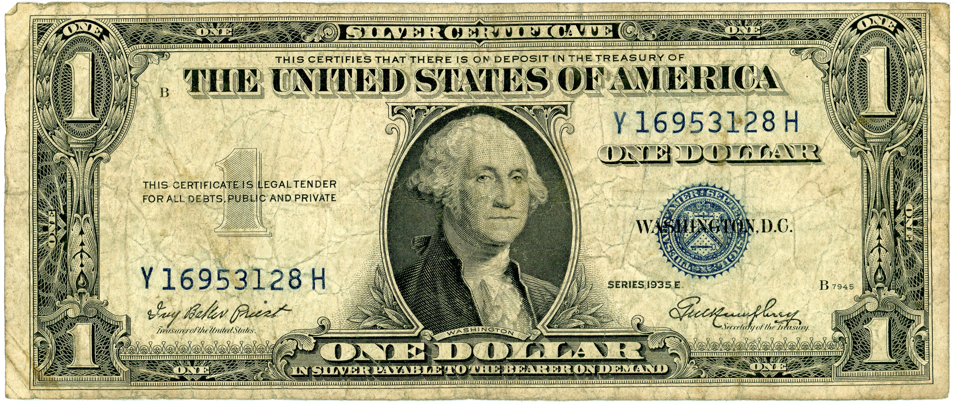 1935 E $1 Silver Certificate Priest Humphrey F-1614 Y16953128H