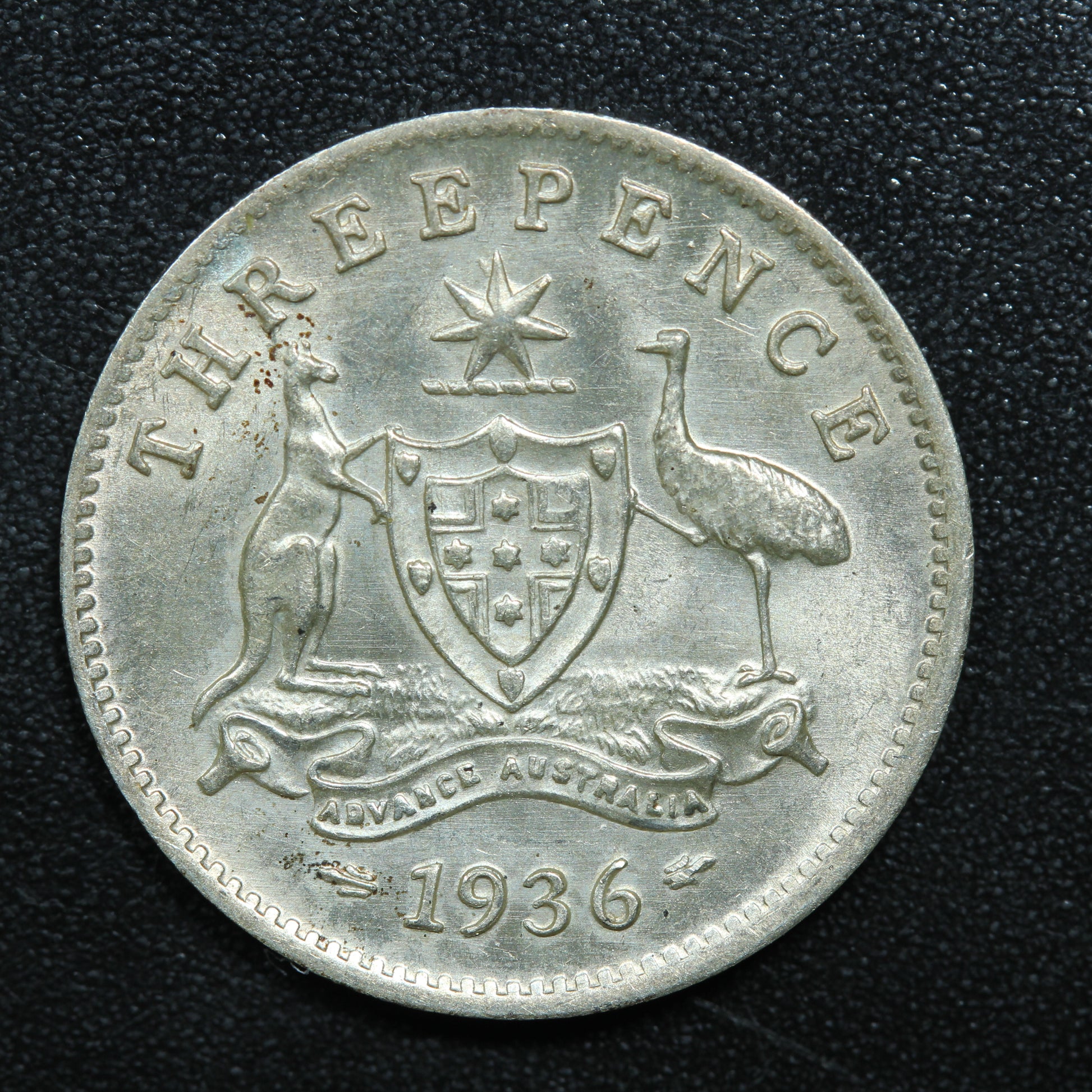 1936 Australian 3 Three Pence Silver Coin - KM# 24