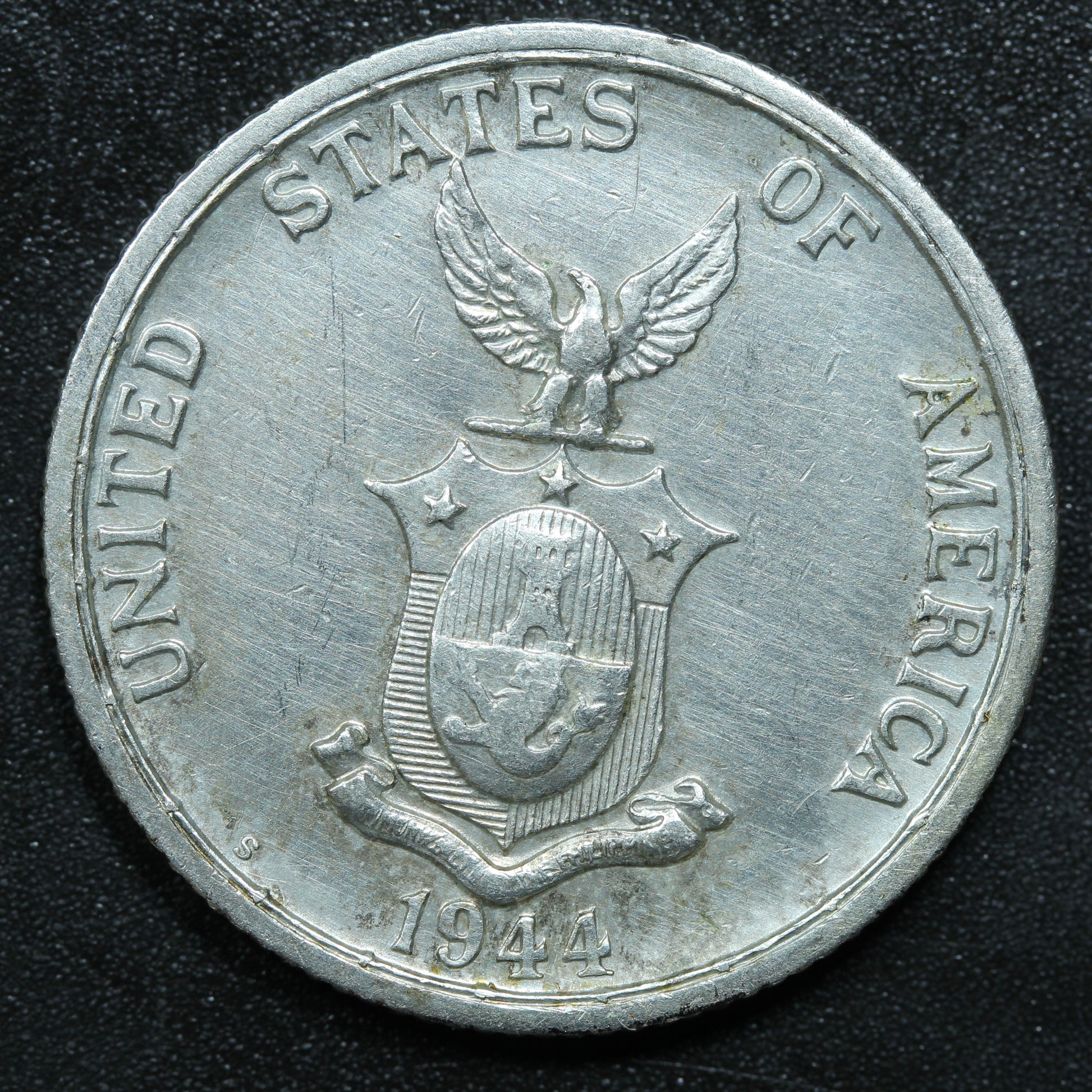 1944 S 50 Centavos Philippines Silver Coin -KM# 183