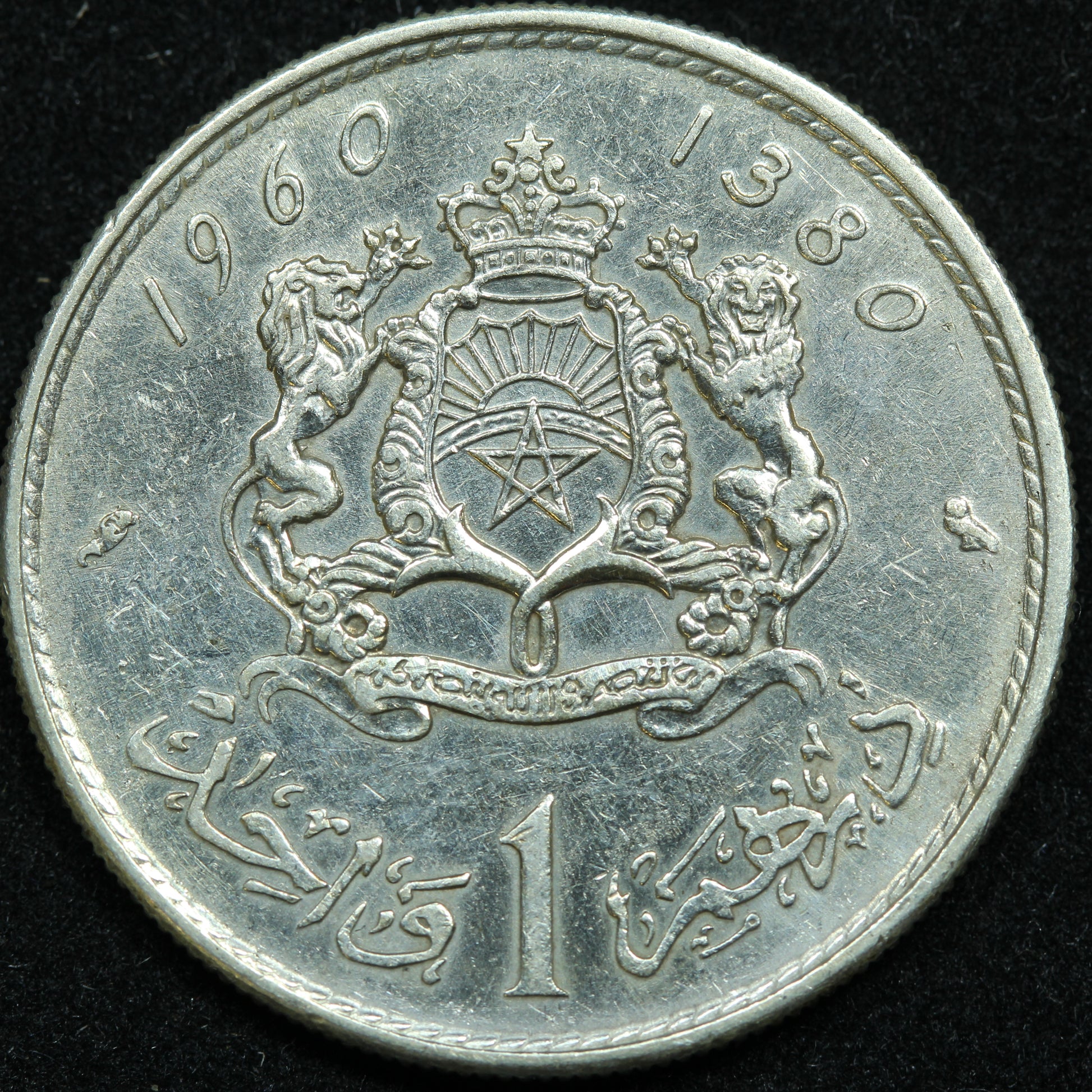 1960 (1380) Morocco 1 Dirham Silver Coin - Y# 55