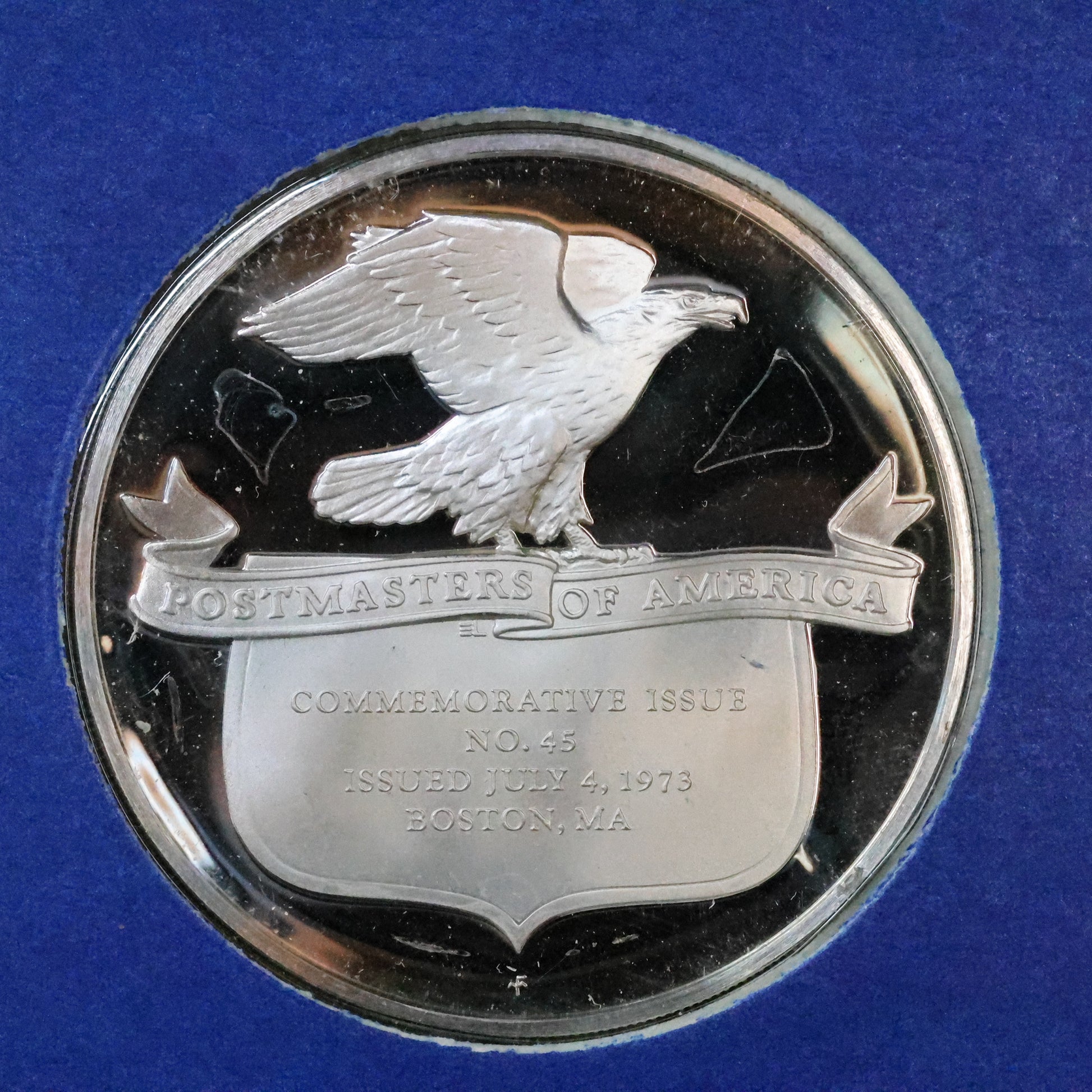 1973 Postmasters of America STERLING SILVER Art Round - No. 45 Boston Tea Party