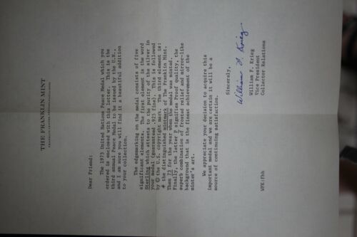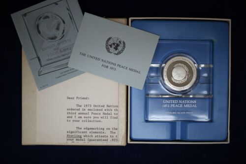 1973 United Nations Sterling Silver Peace Medal w/ Stand, Box & Papers