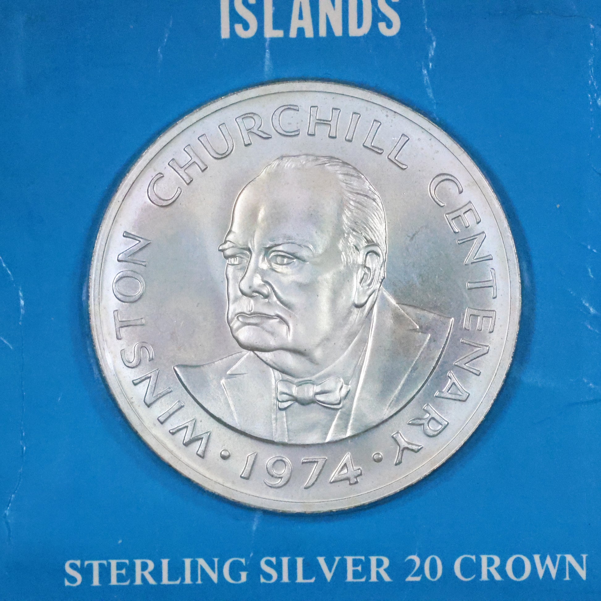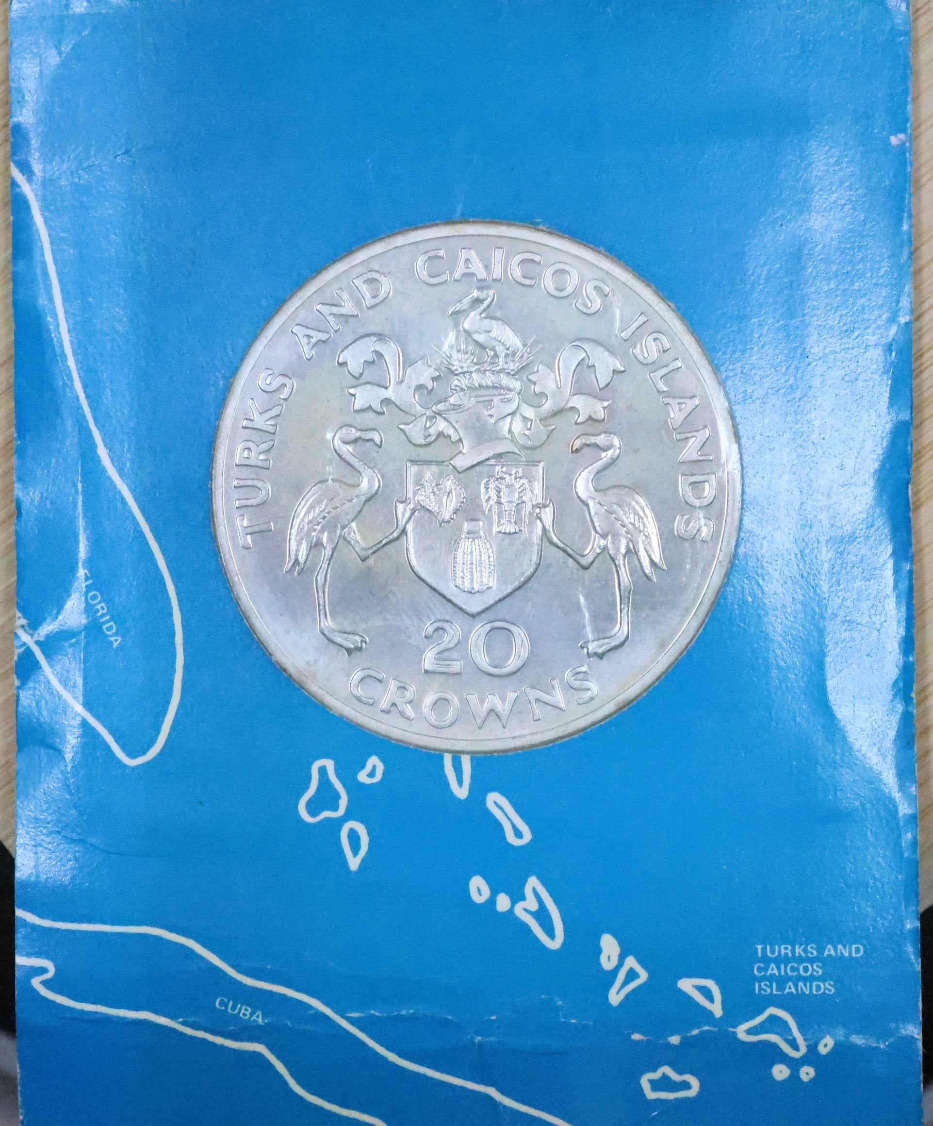 1974 Turks & Caicos Islands 20 Crowns Churchill Centenary Sterling Silver Coin in OGP