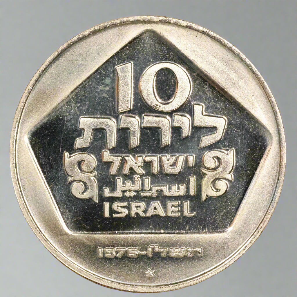 1975 ISRAEL 10 Lirot Hanukkah Holland Lamp .500 Silver Coin