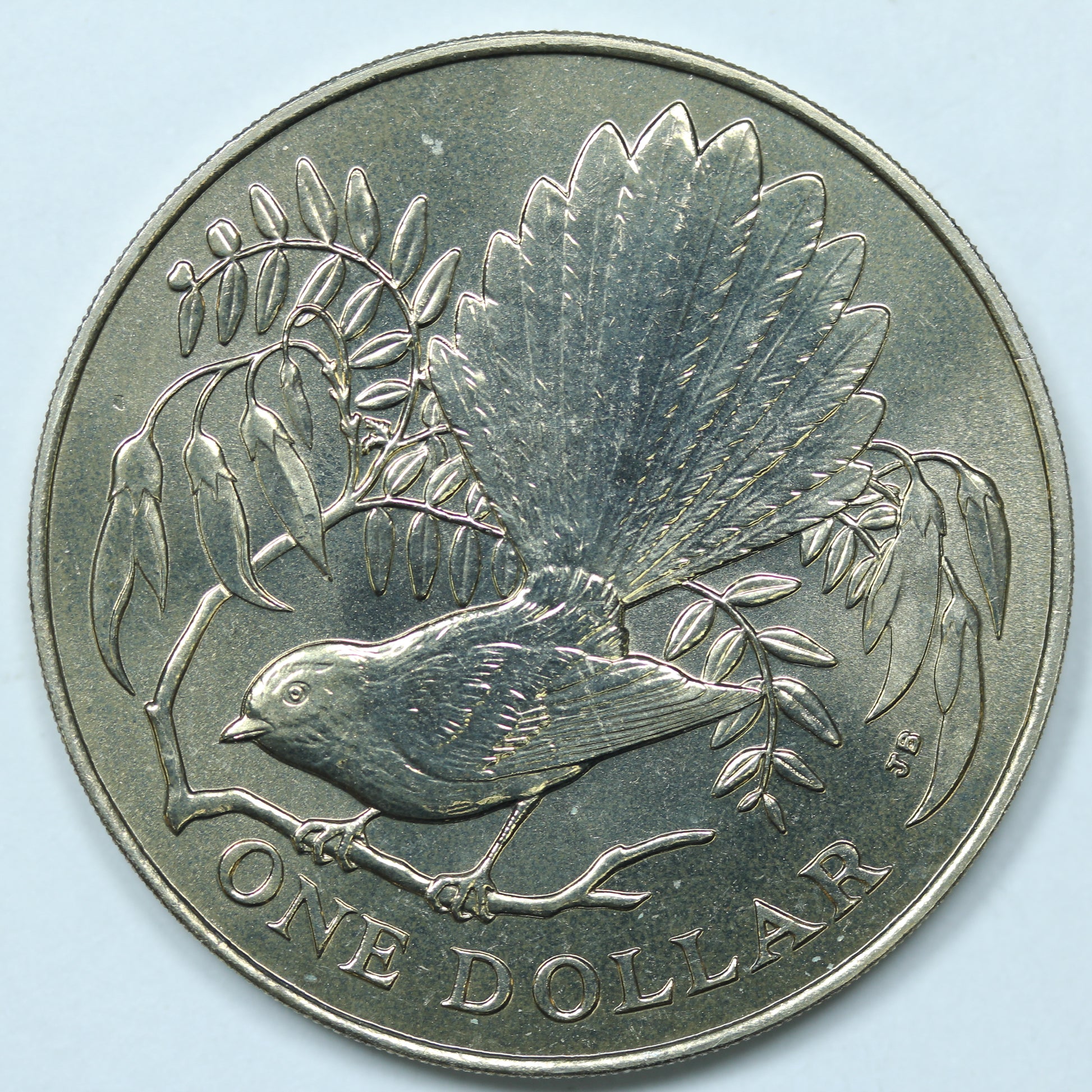 1980 New Zealand NZ $1 Coin Fantail Bird BU