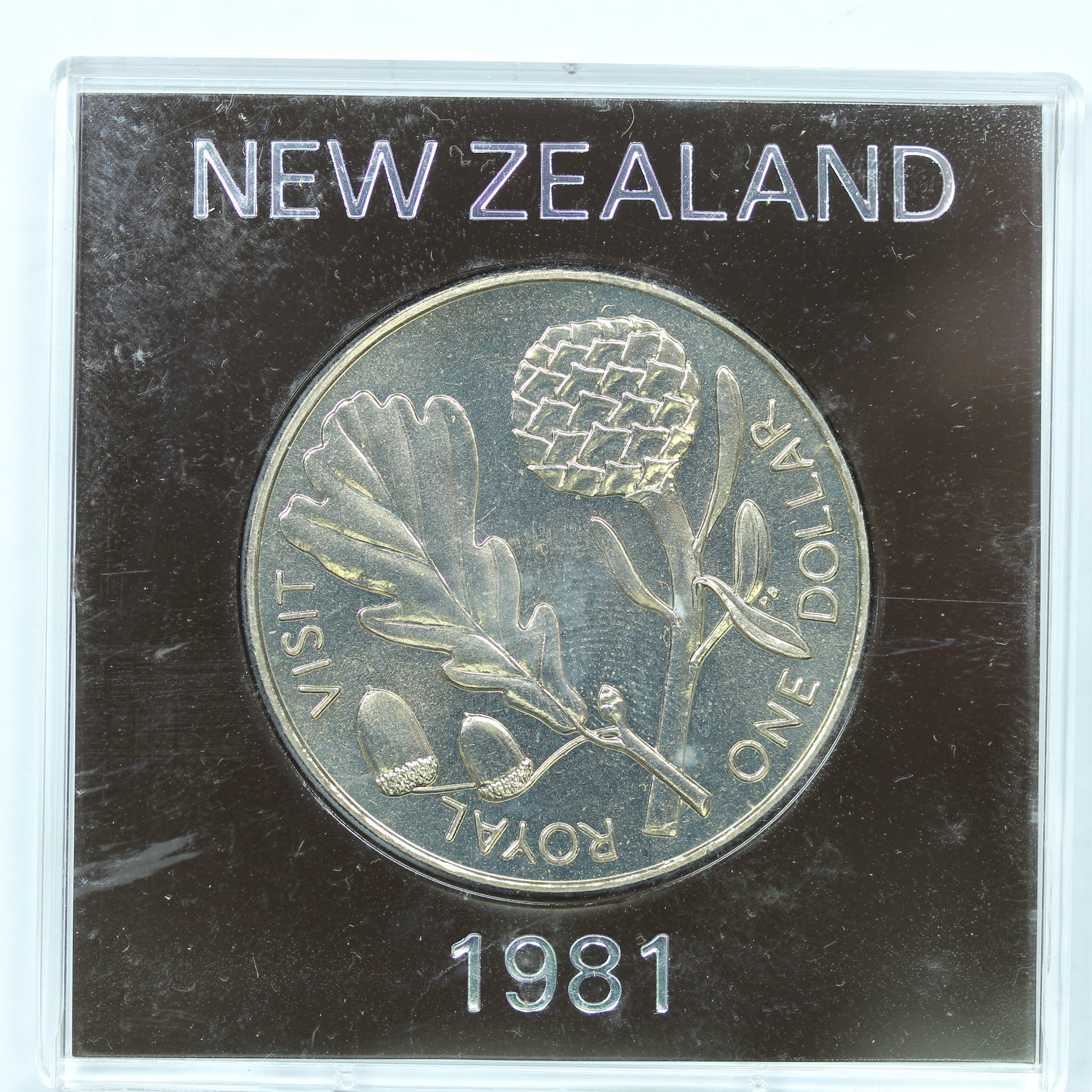 1981 New Zealand NZ $1 Coin Royal Visit BU in Perspex Case