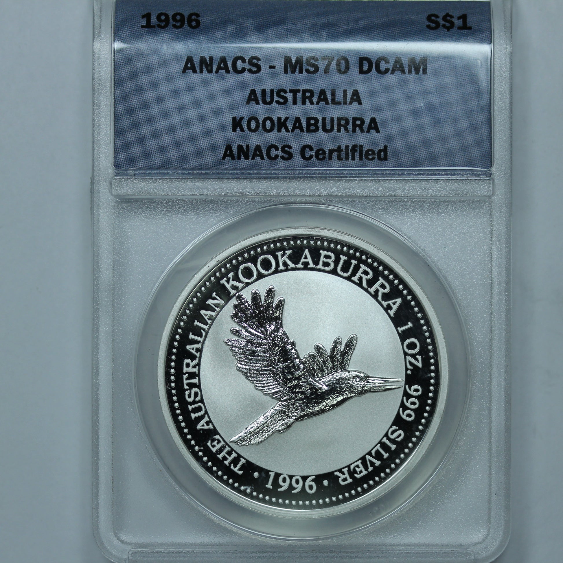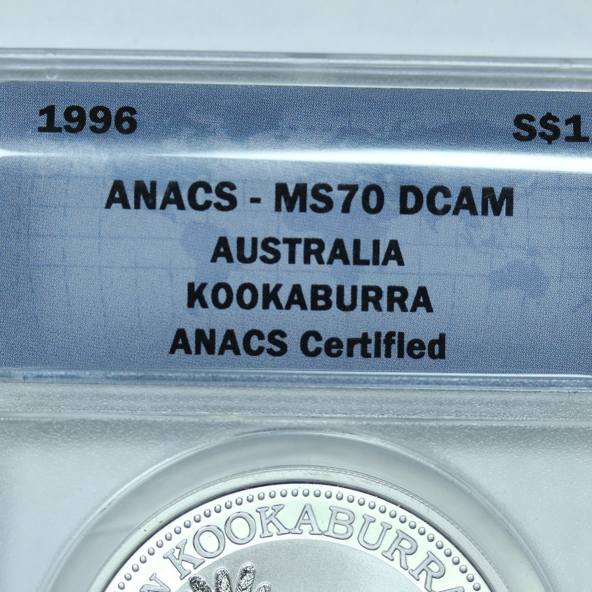 1996 $1 Australia Kookaburra 1 oz Silver - ANACS MS70 DCAM Deep Cameo