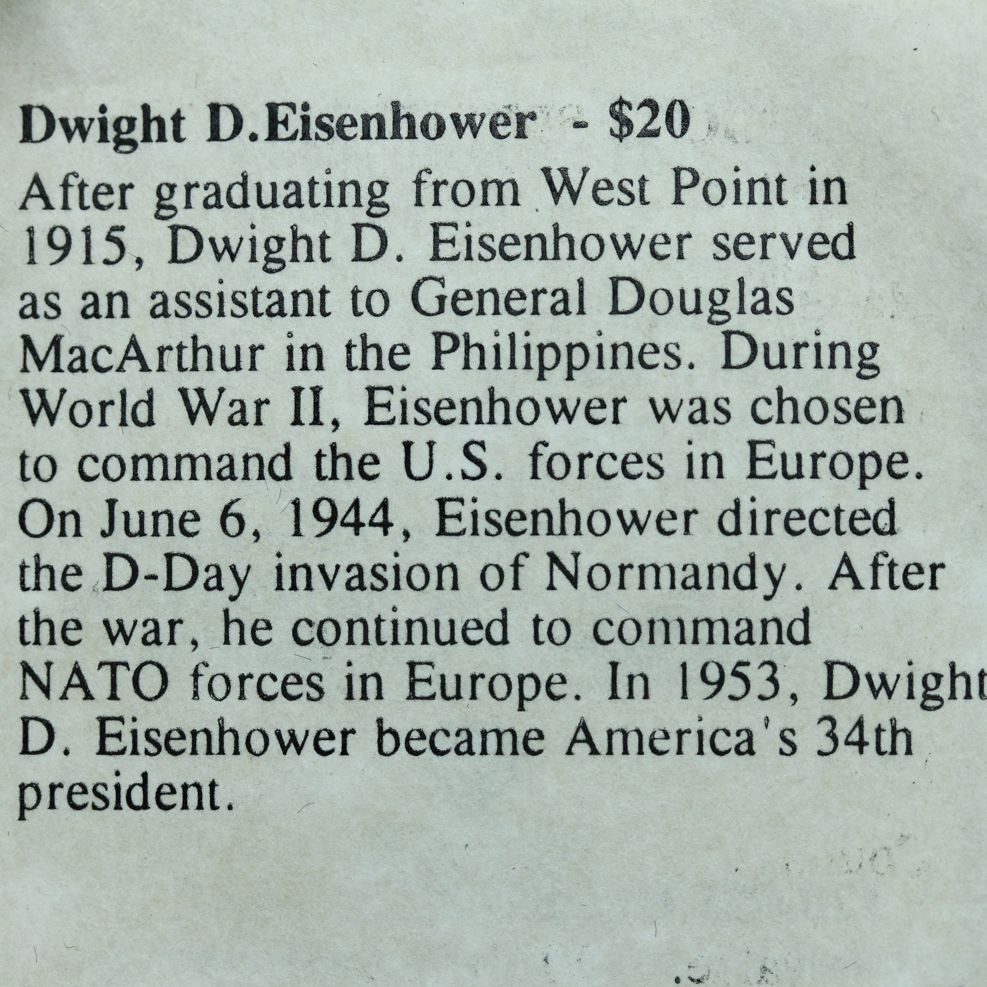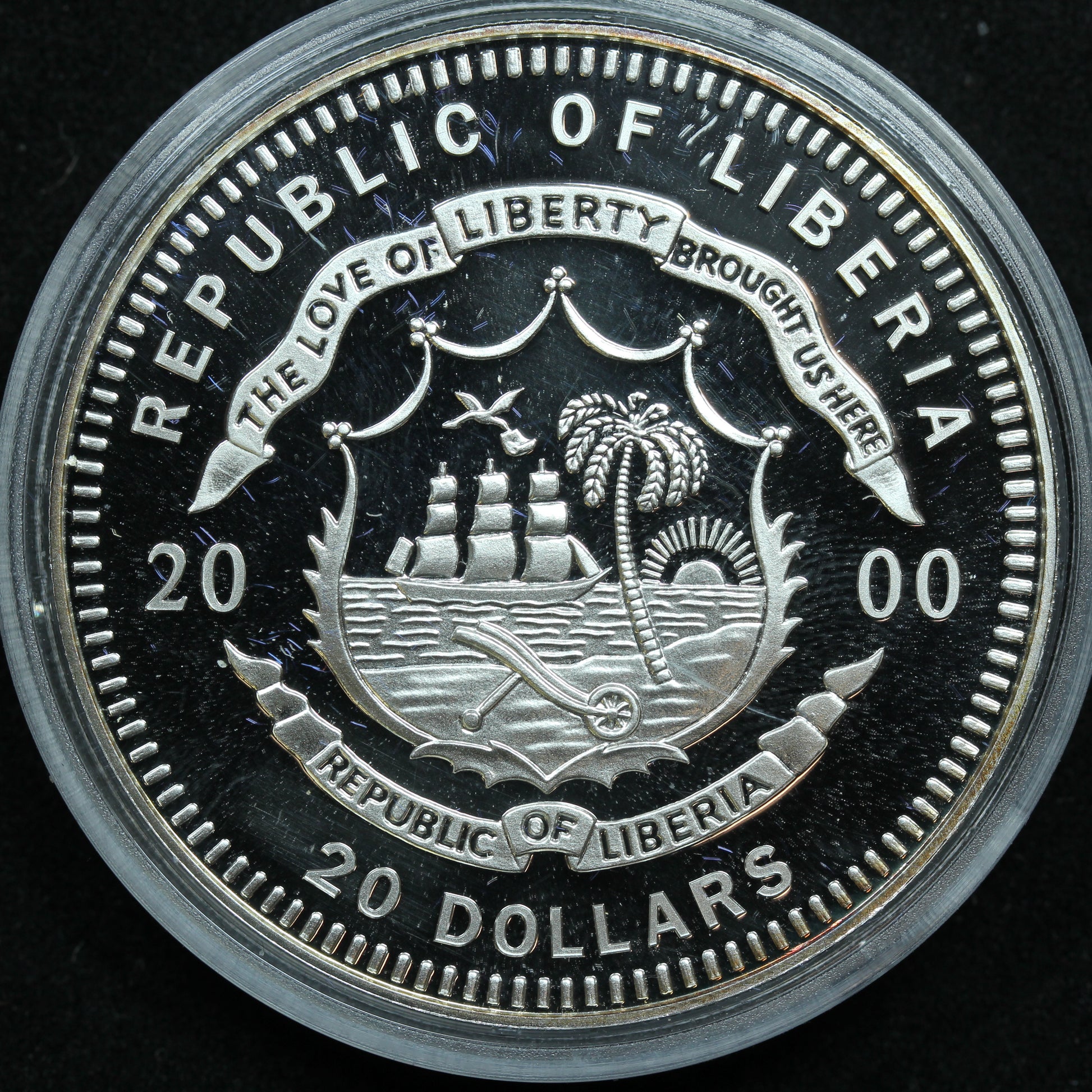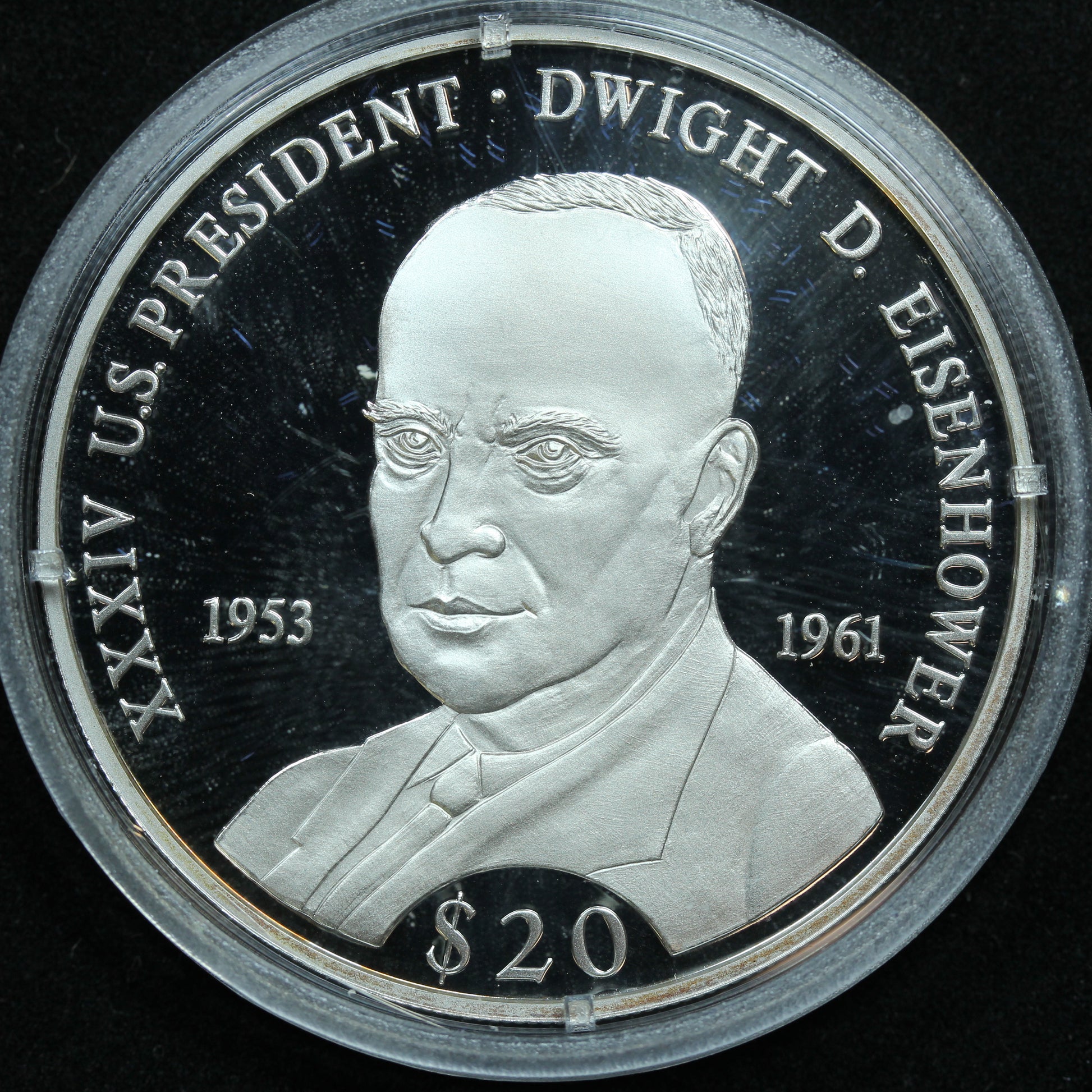 2000 Liberia $20 .999 Fine Silver Coin U.S. Presidents w/ COA - Eisenhower