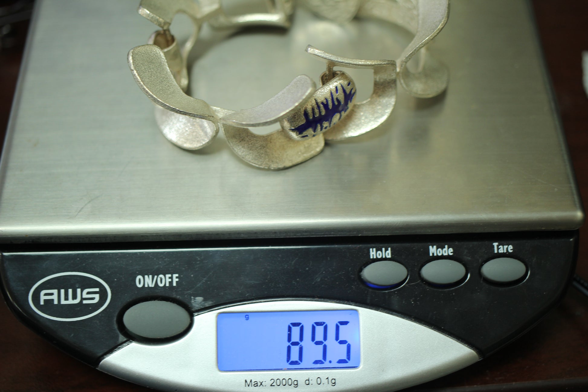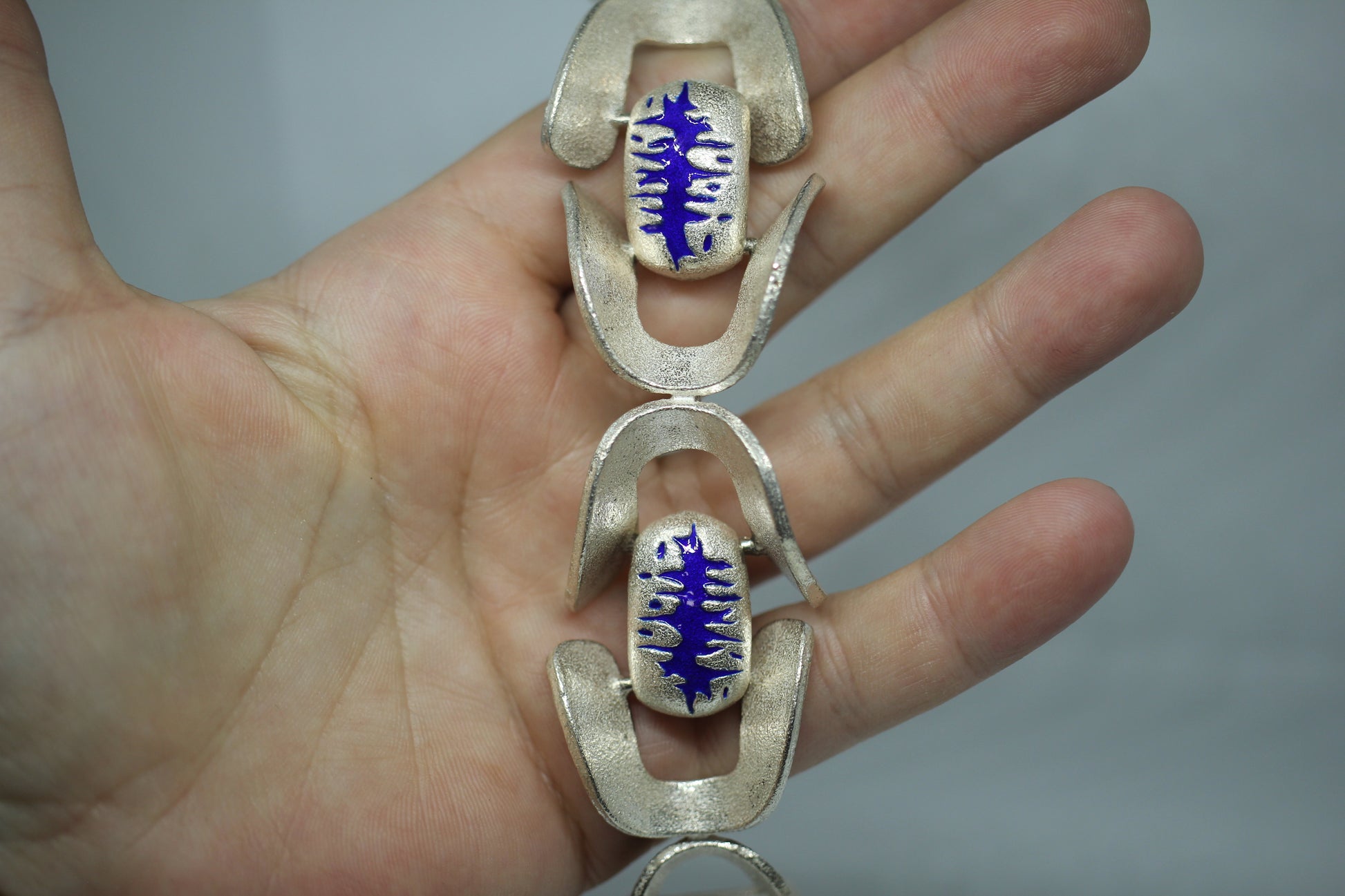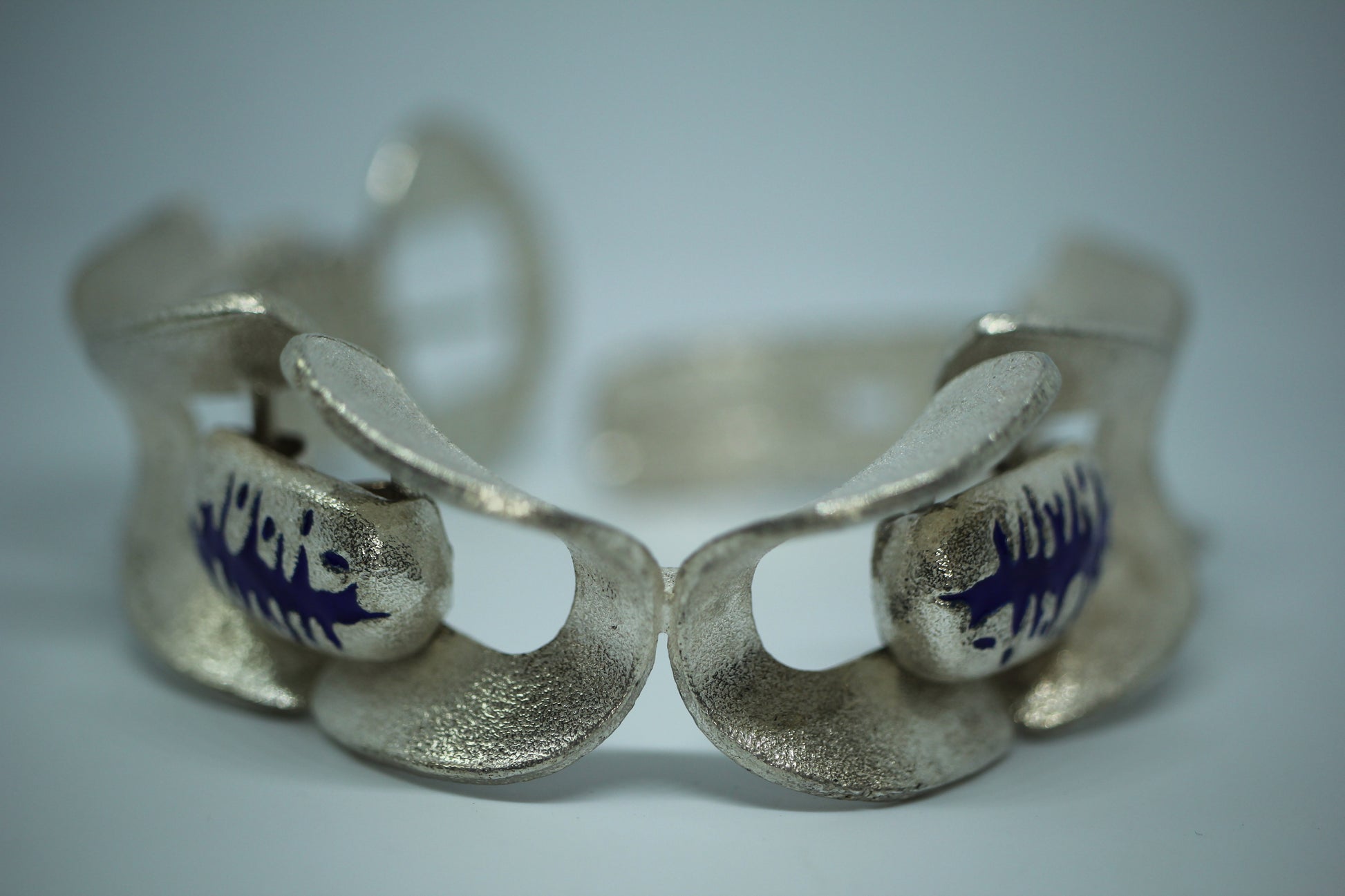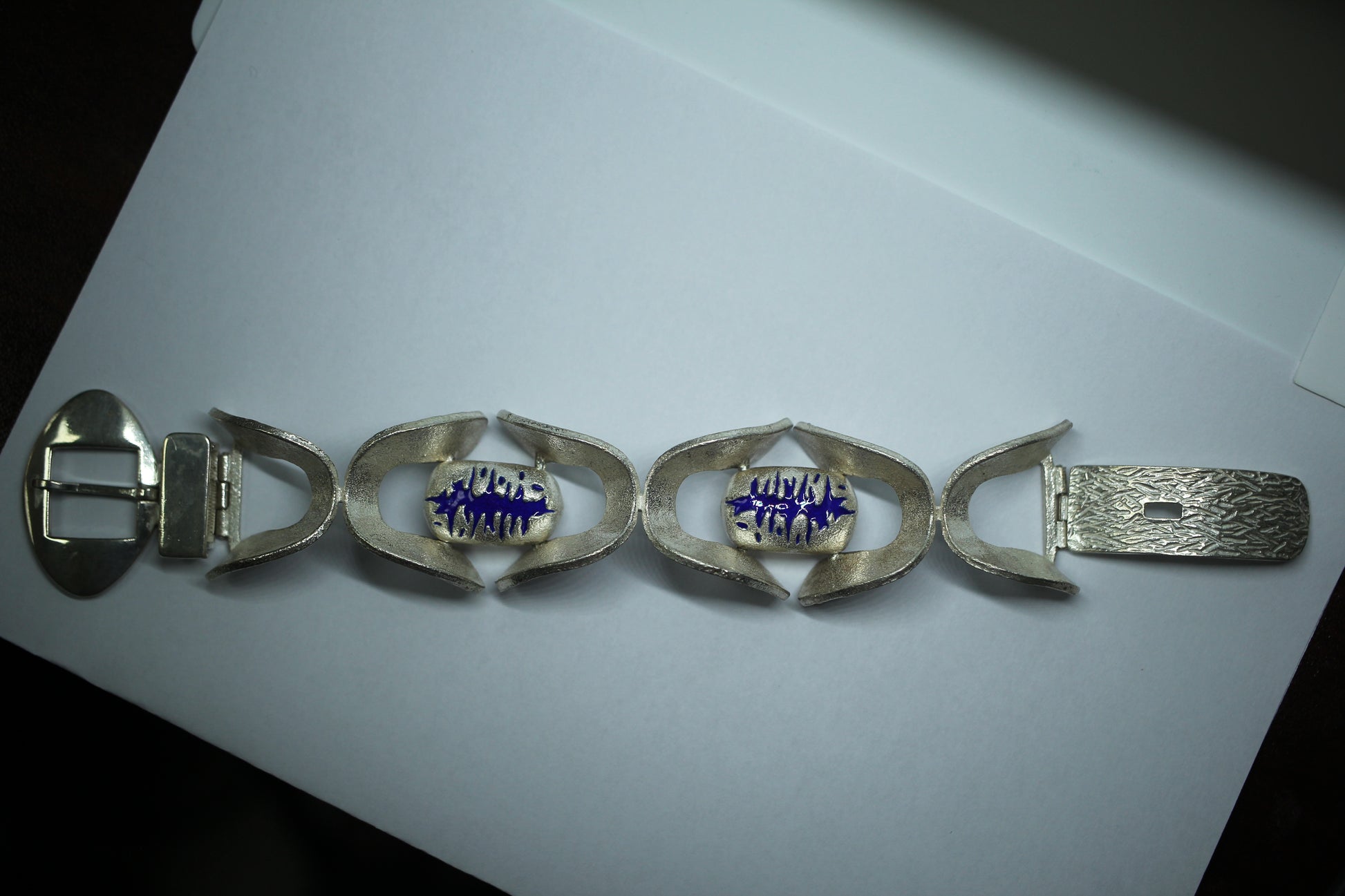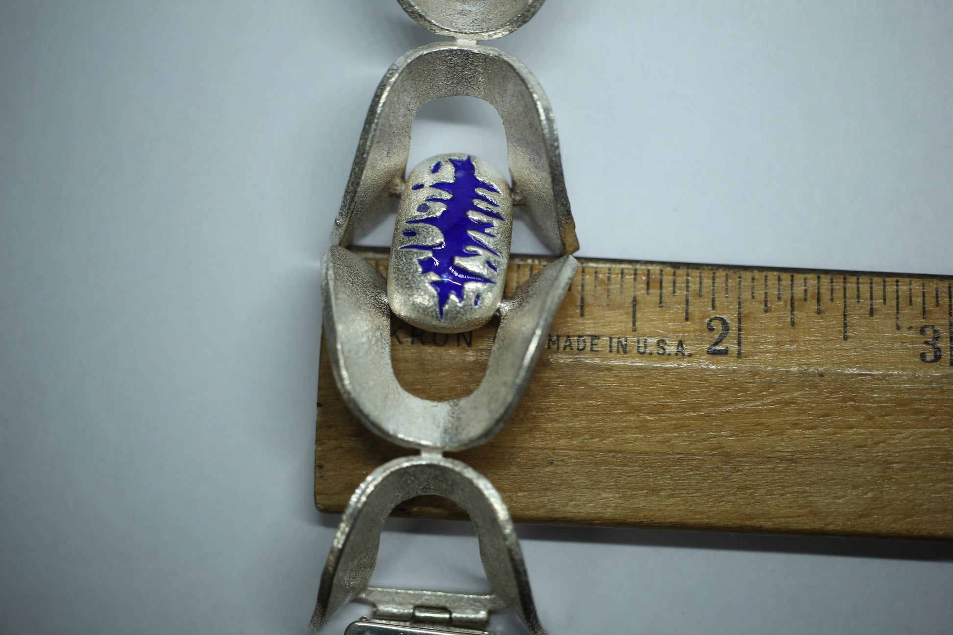 925 Sterling Silver Vintage O.P. Orlandini Modernist Blue Enamel Bracelet ~7.5"
