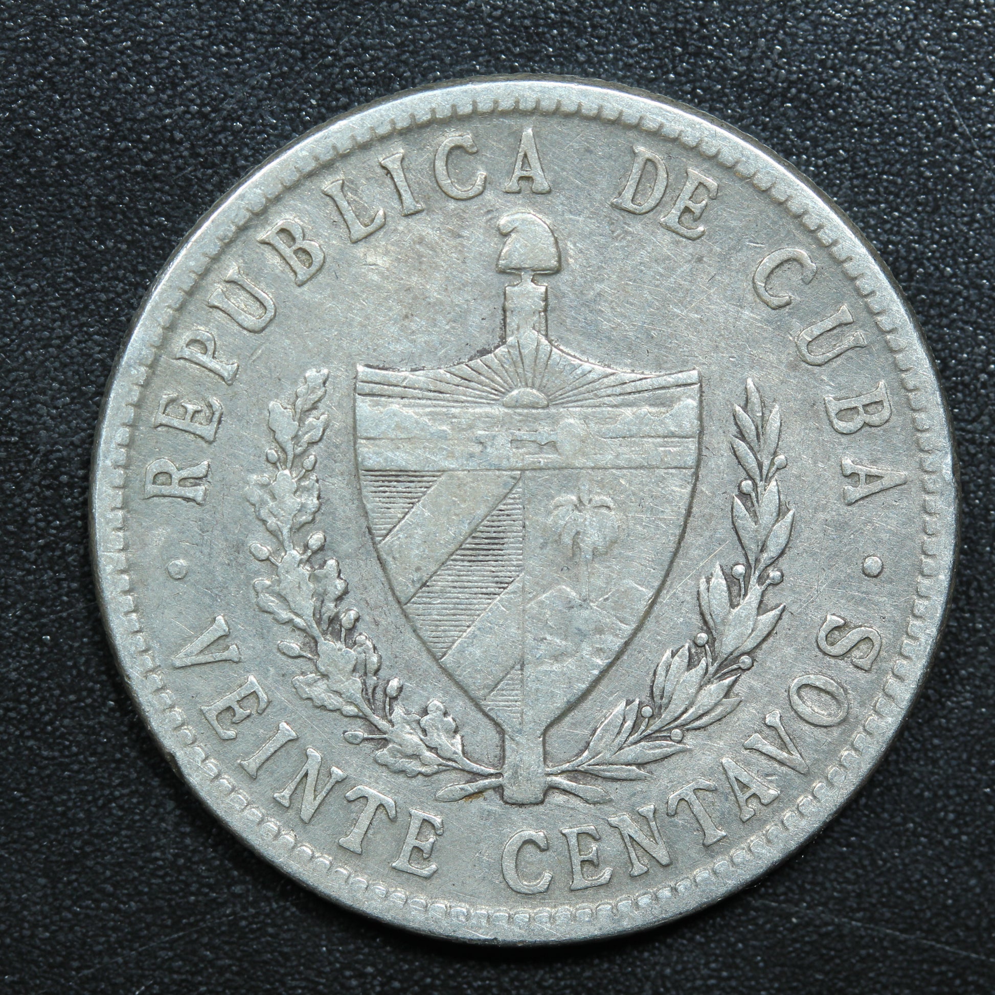 1948 Cuba 20 Veinte Centavos Silver Coin (.900 Fine) KM# 13