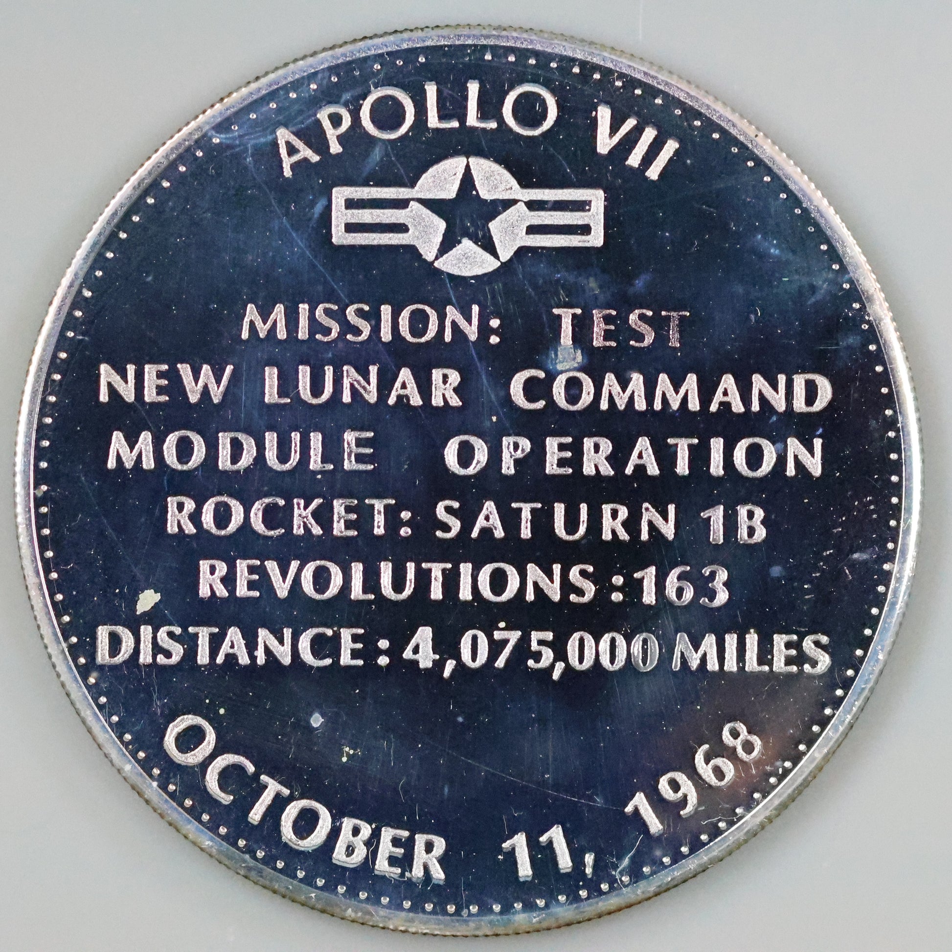 Danbury Mint Men In Space - Apollo VII First Apollo Flight Sterling Silver Proof Coin Medal