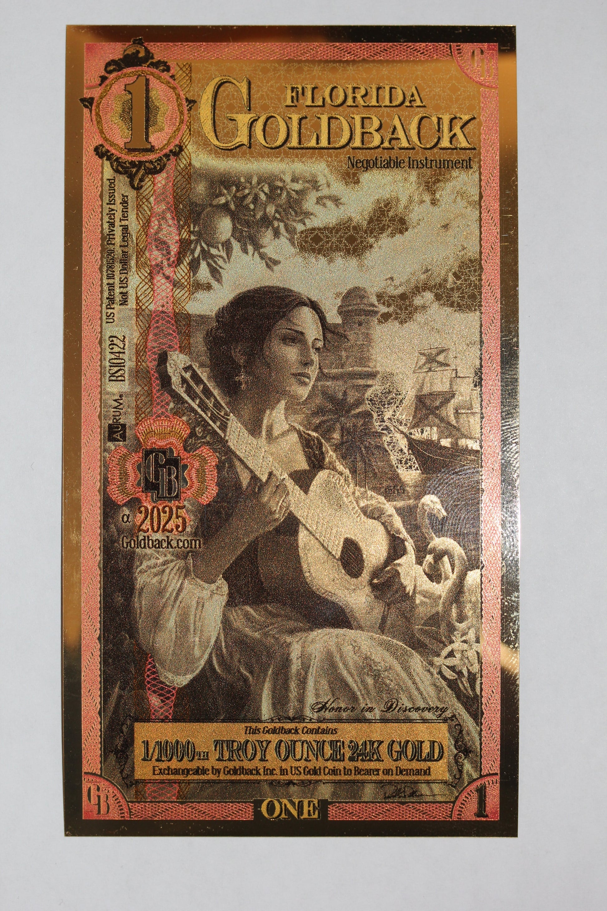 Florida 1 Goldback 2025 Gold Foil Note 1/1000th Troy Oz 24KT Goldback