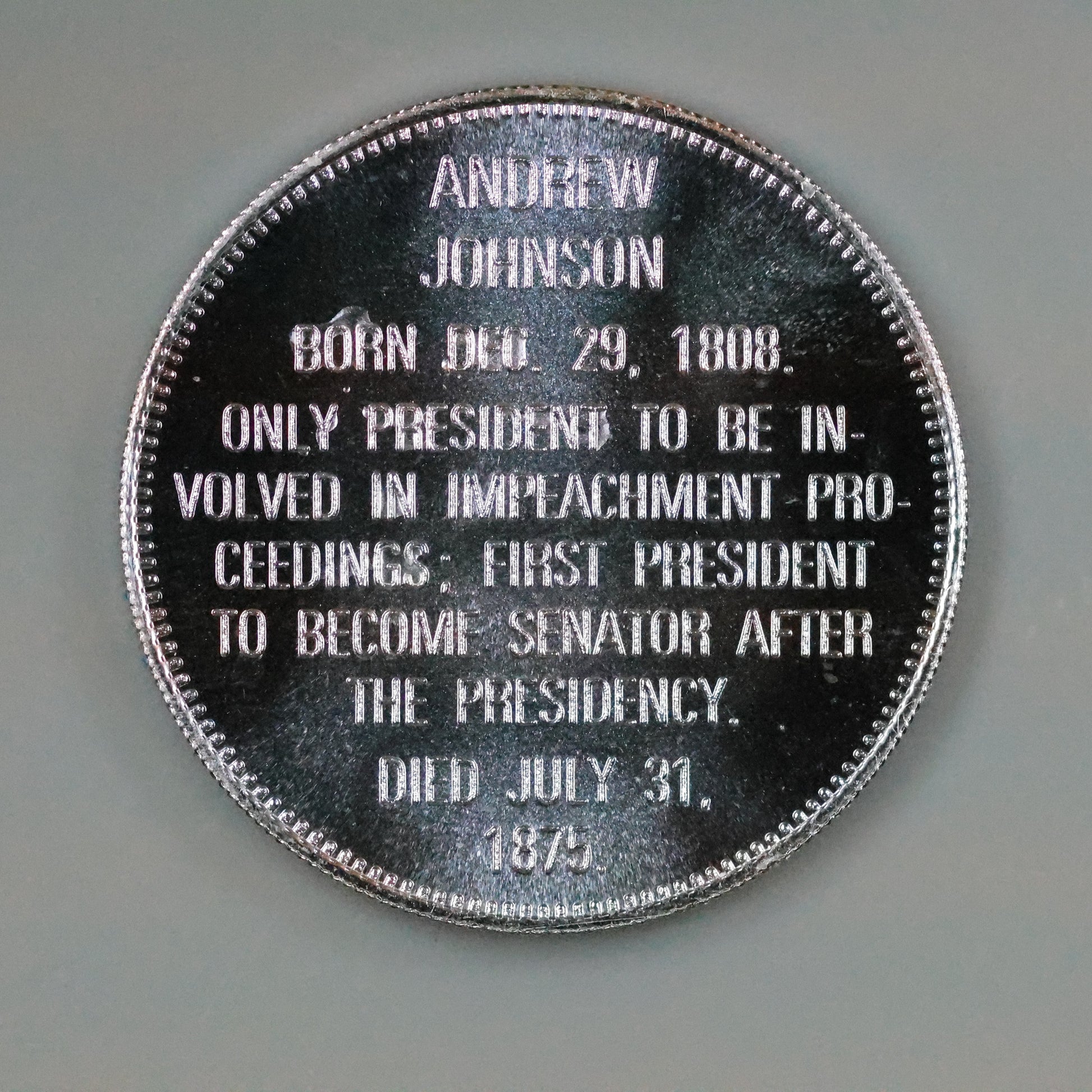 Franklin Mint Presidential Commemorative Sterling Silver Medal - Andrew Johnson