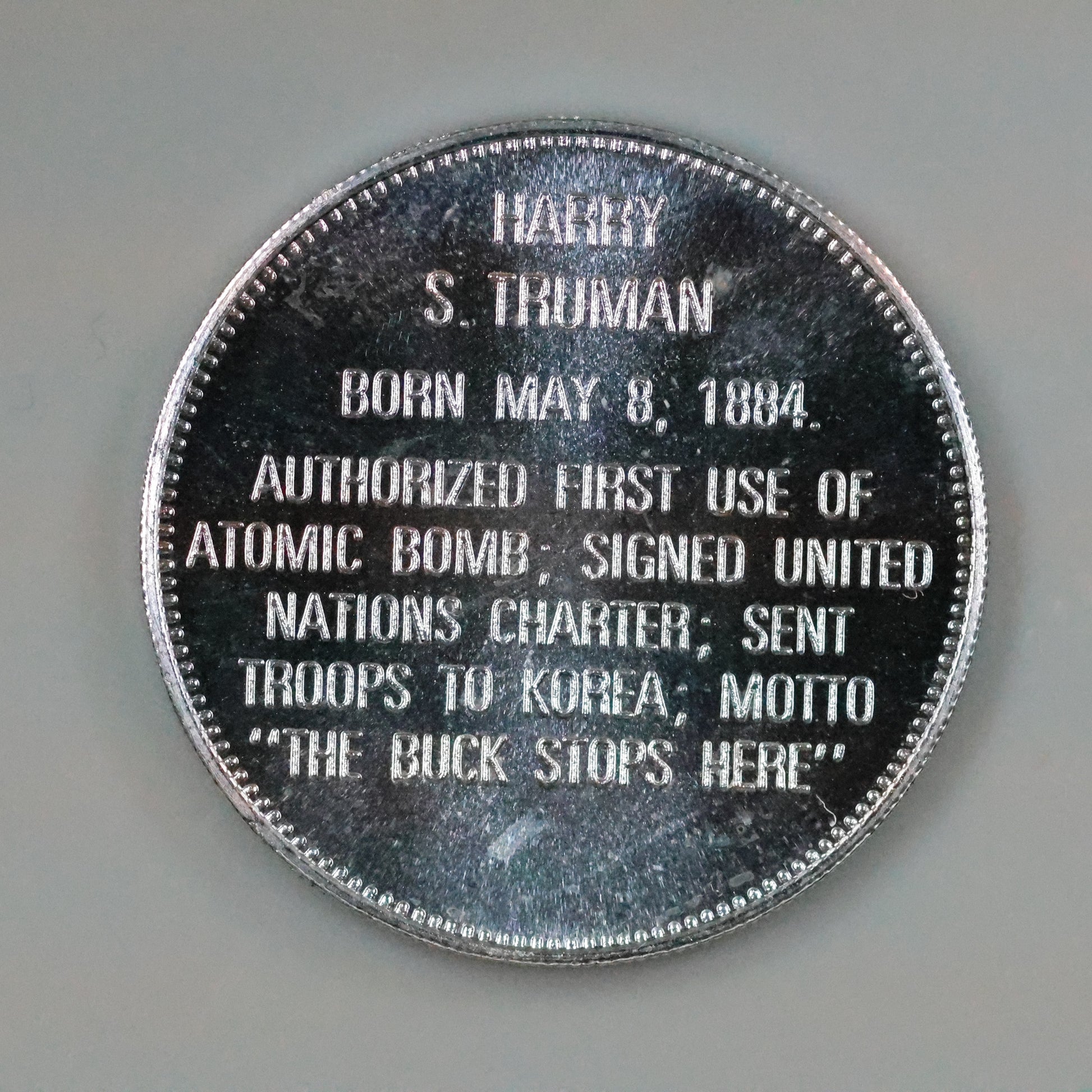 Franklin Mint Presidential Commemorative Sterling Silver Medal - Harry S. Truman