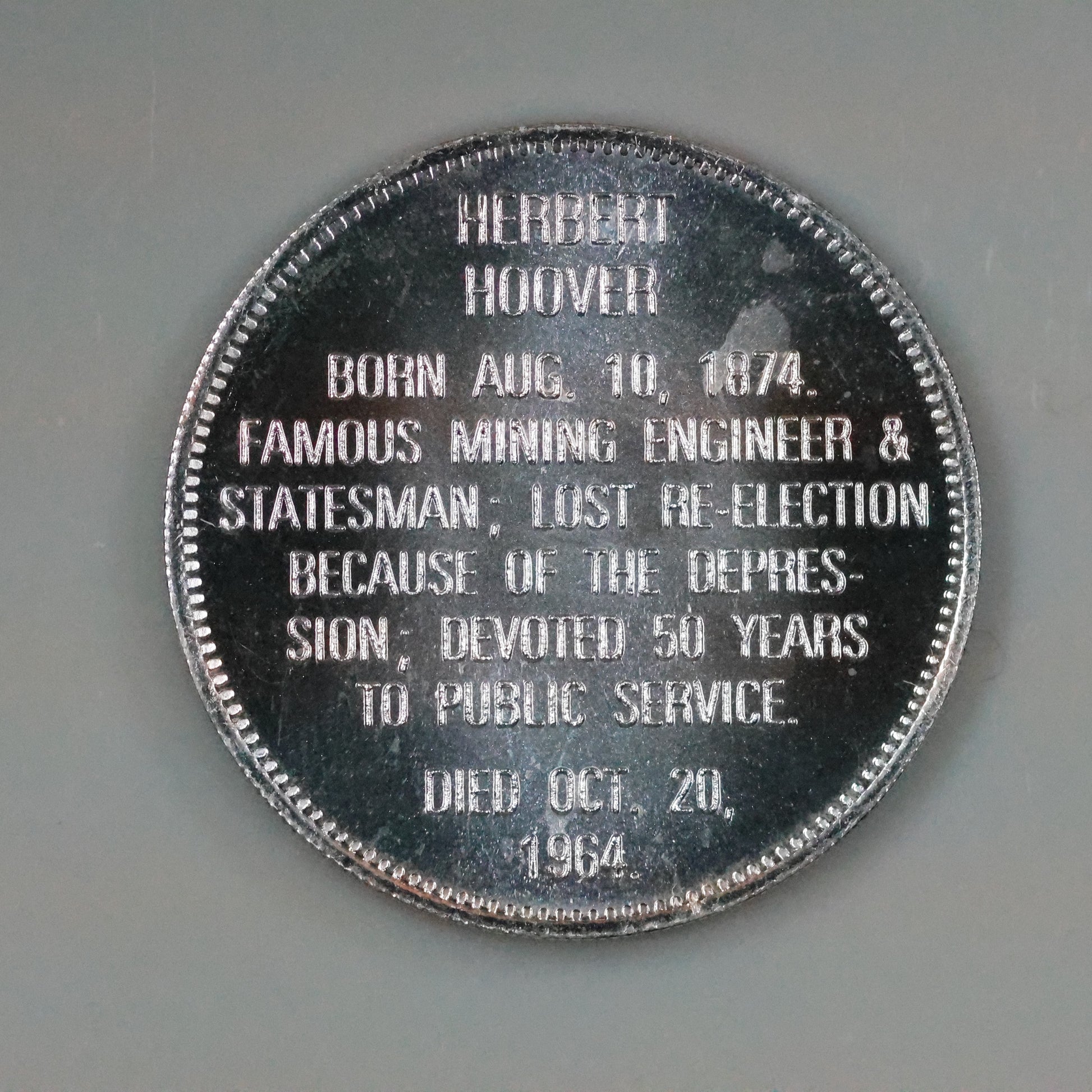 Franklin Mint Presidential Commemorative Sterling Silver Medal - Herbert Hoover