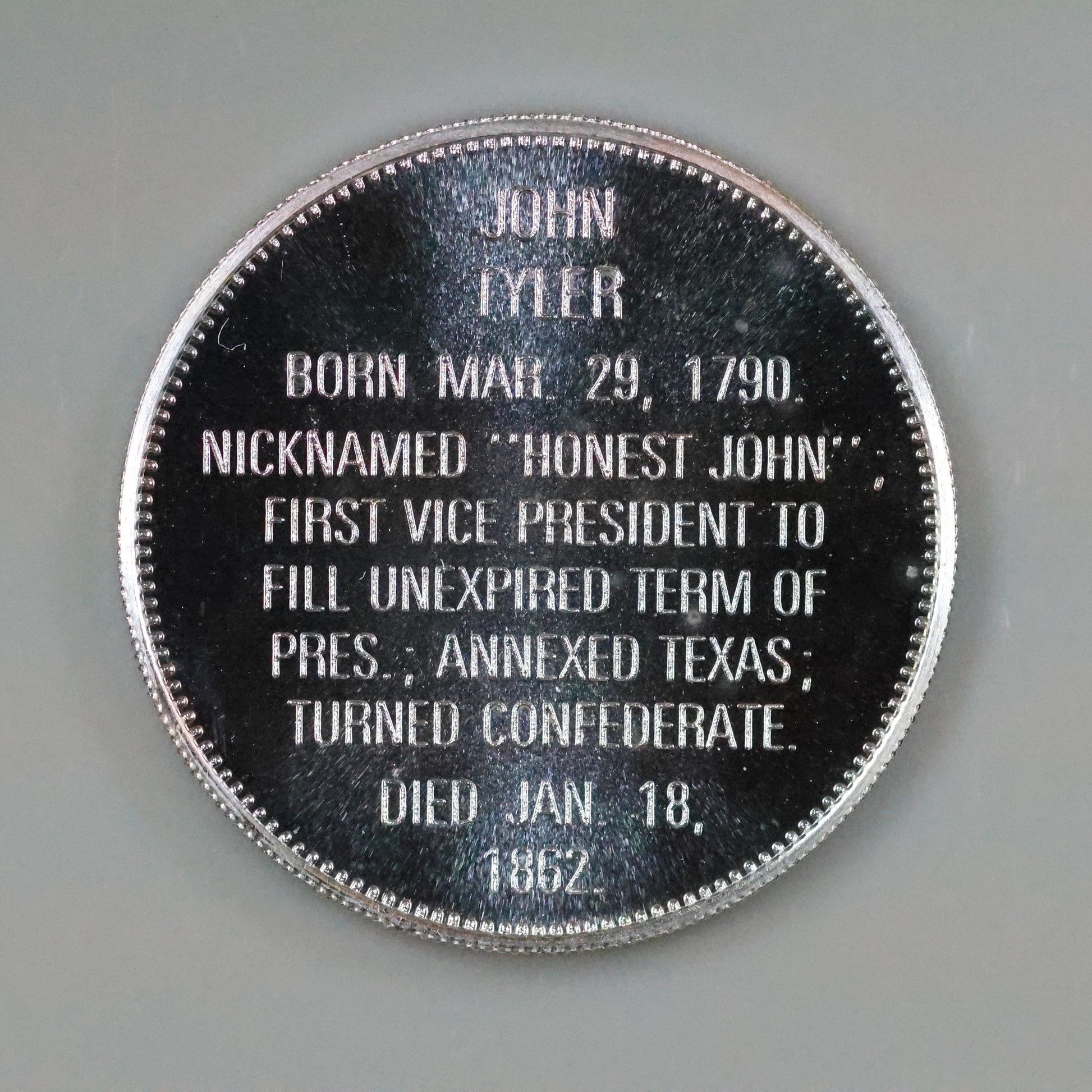 Franklin Mint Presidential Commemorative Sterling Silver Medal - John Tyler