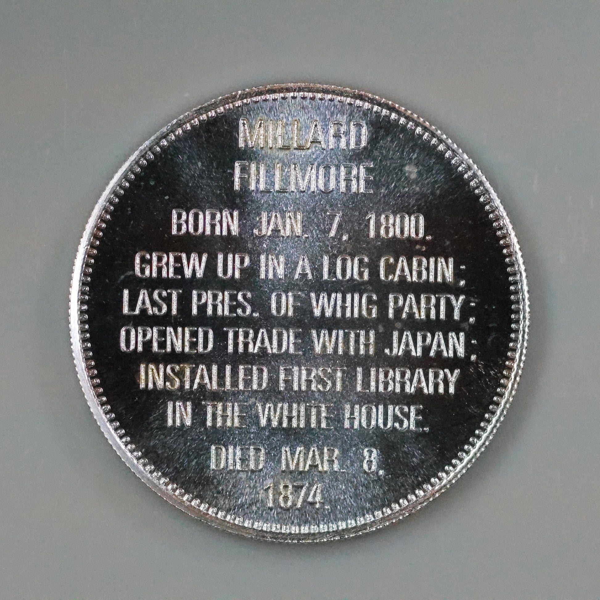 Franklin Mint Presidential Commemorative Sterling Silver Medal - Millard Fillmore