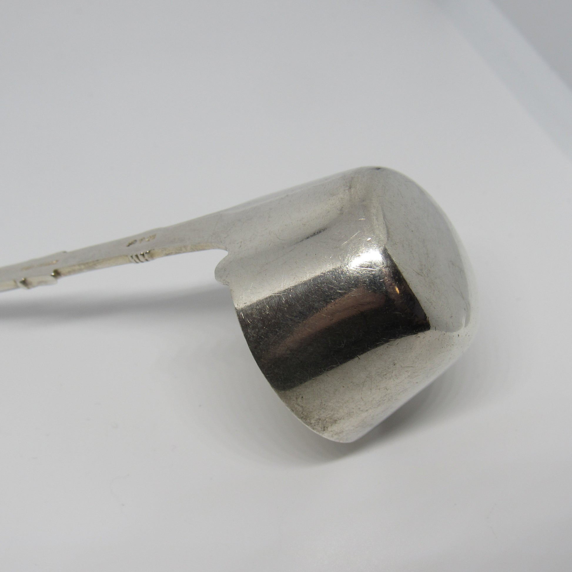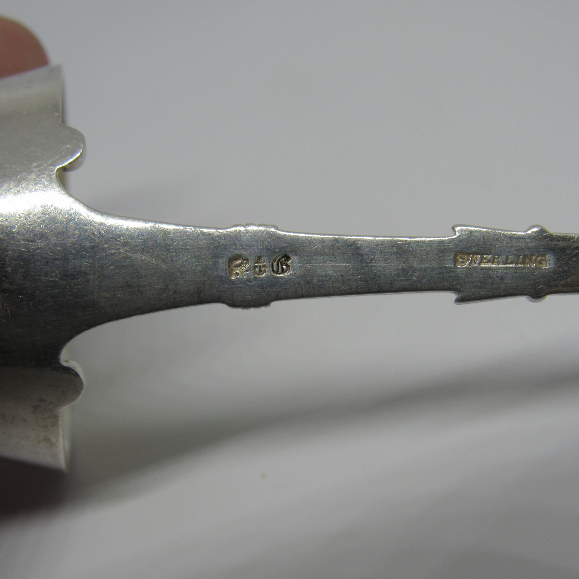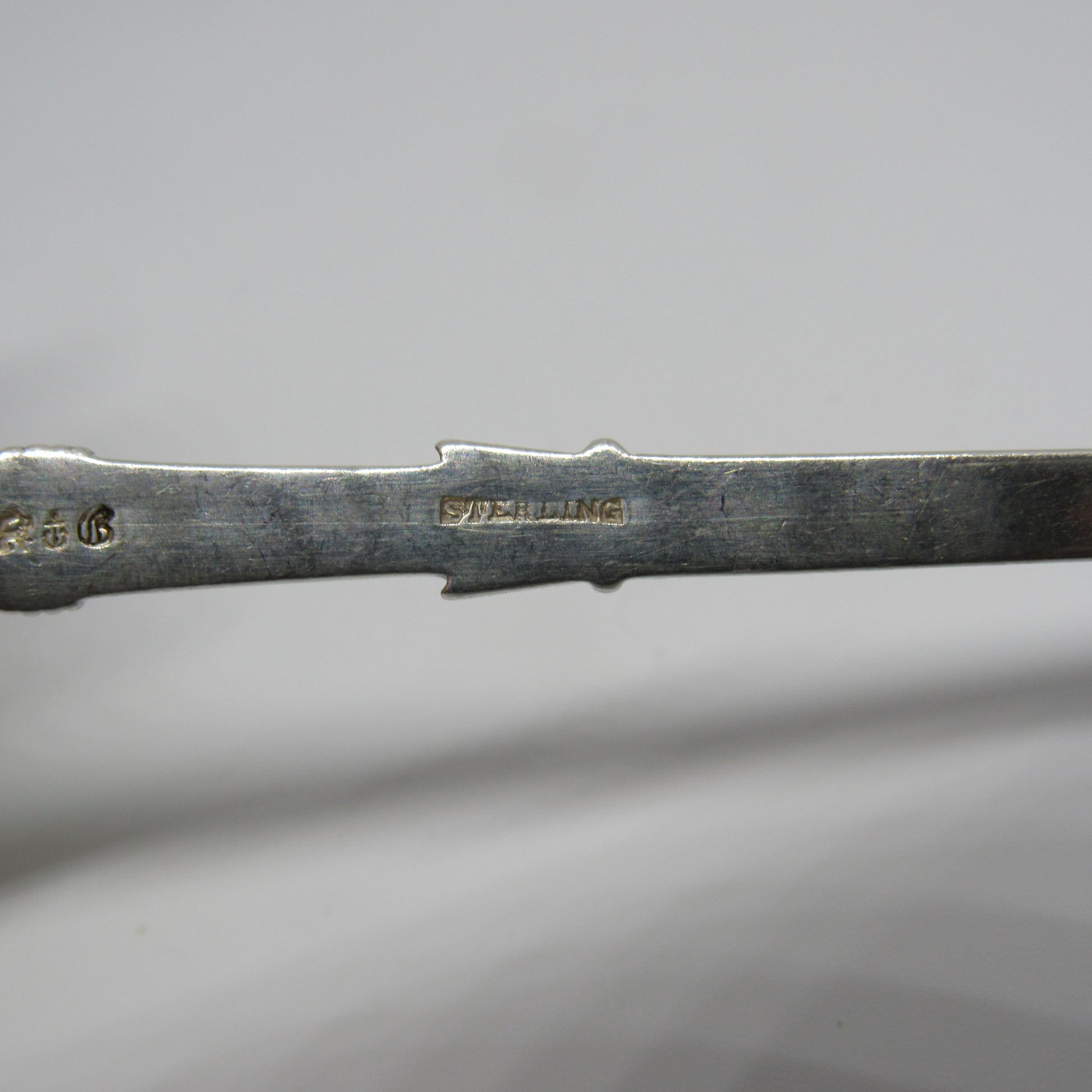 Spoon does have minor scratches due to normal use. There is engraving on the back of the spoon, but am unable to determine what it says.