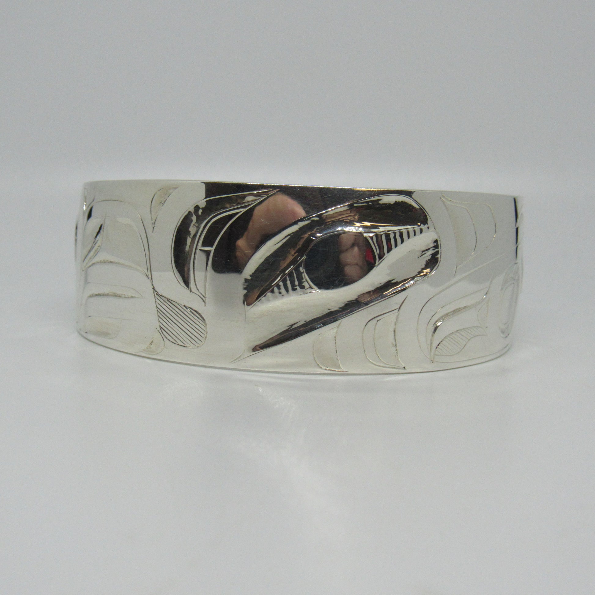 Haida Alvin Adkins Sterling Silver 925 Carved Wide Cuff Bracelet Eagle - 7 inch