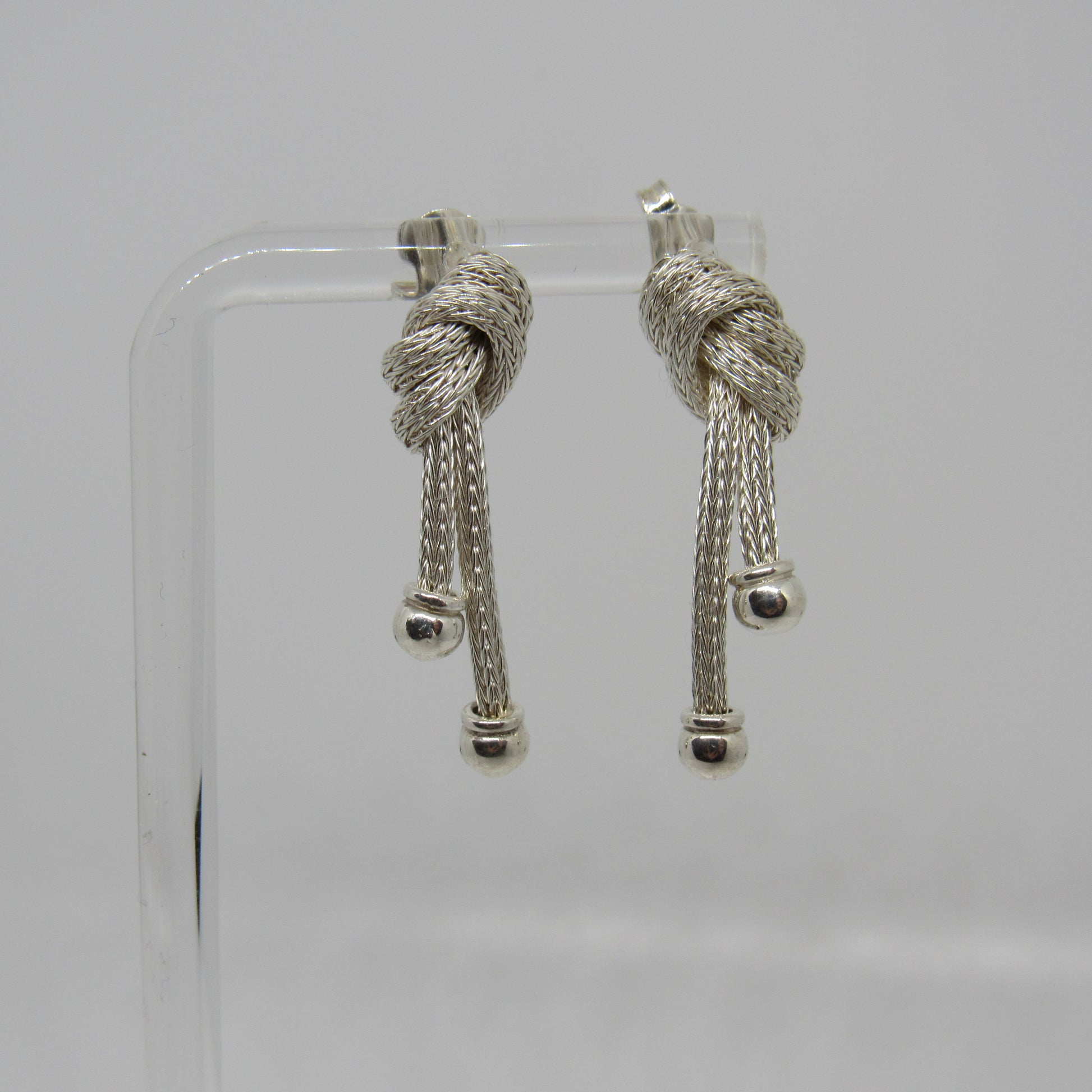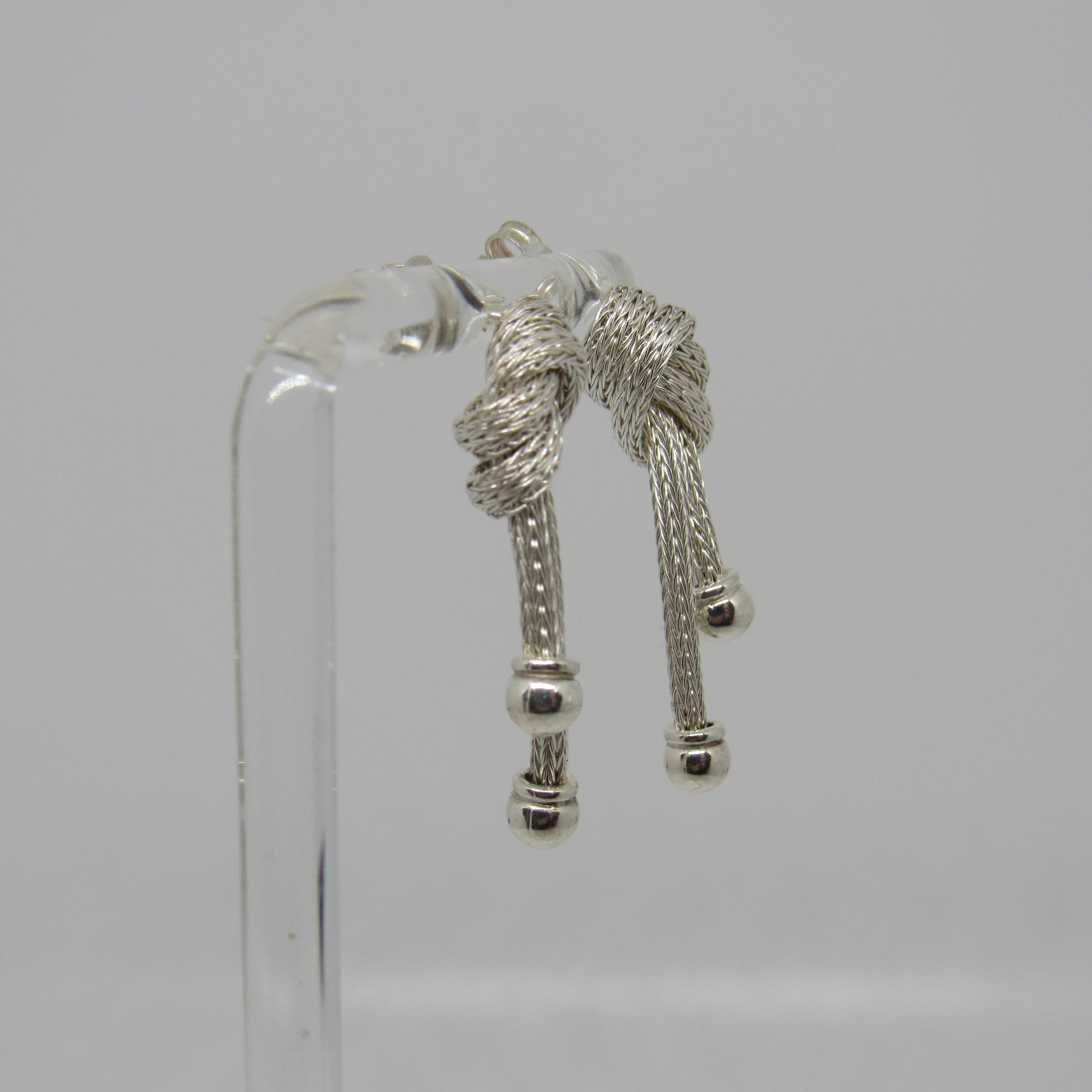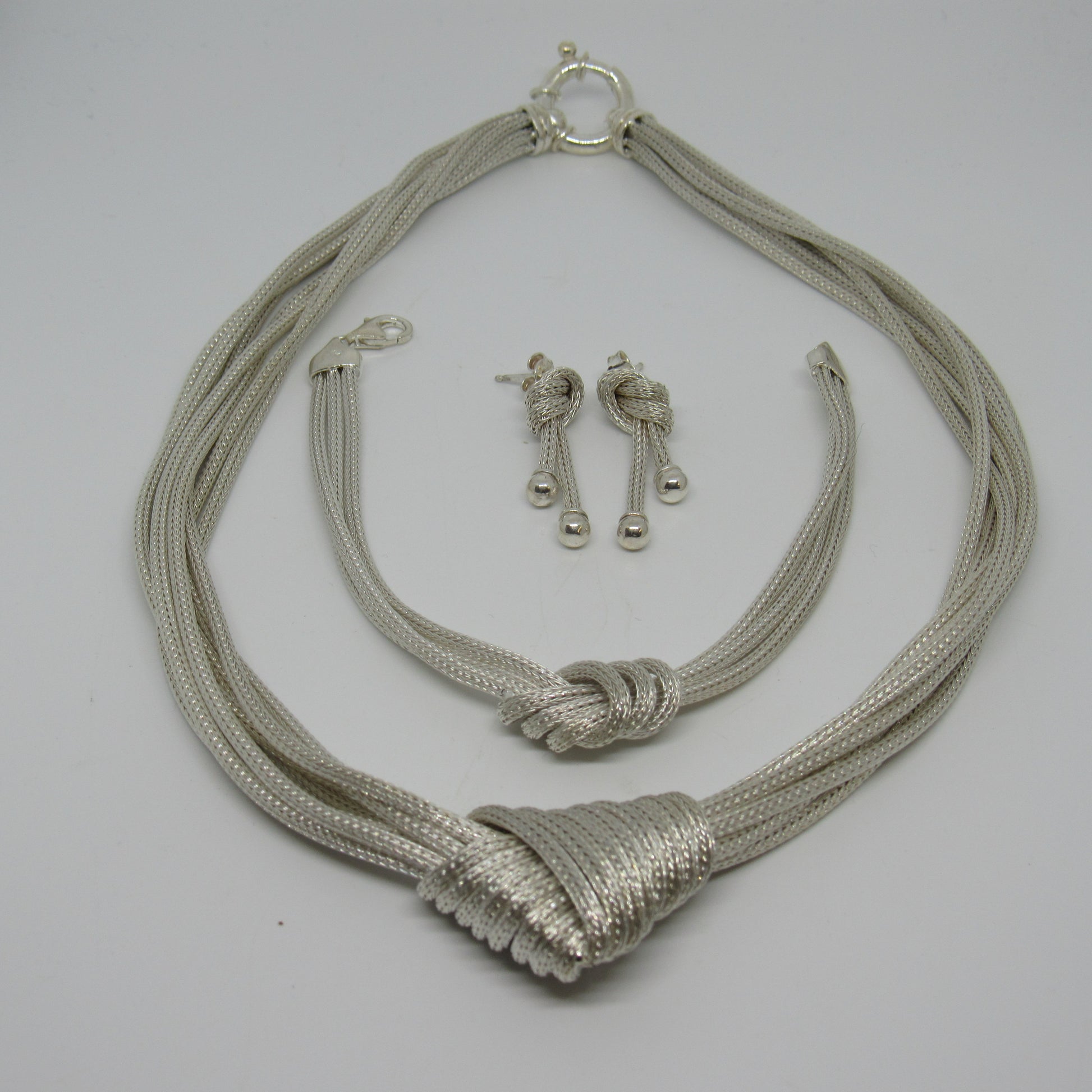 Italian Sterling Silver Top Knot Necklace w/ Matching Bracelet & Earrings - 16 in, 7 in, 1.25 in