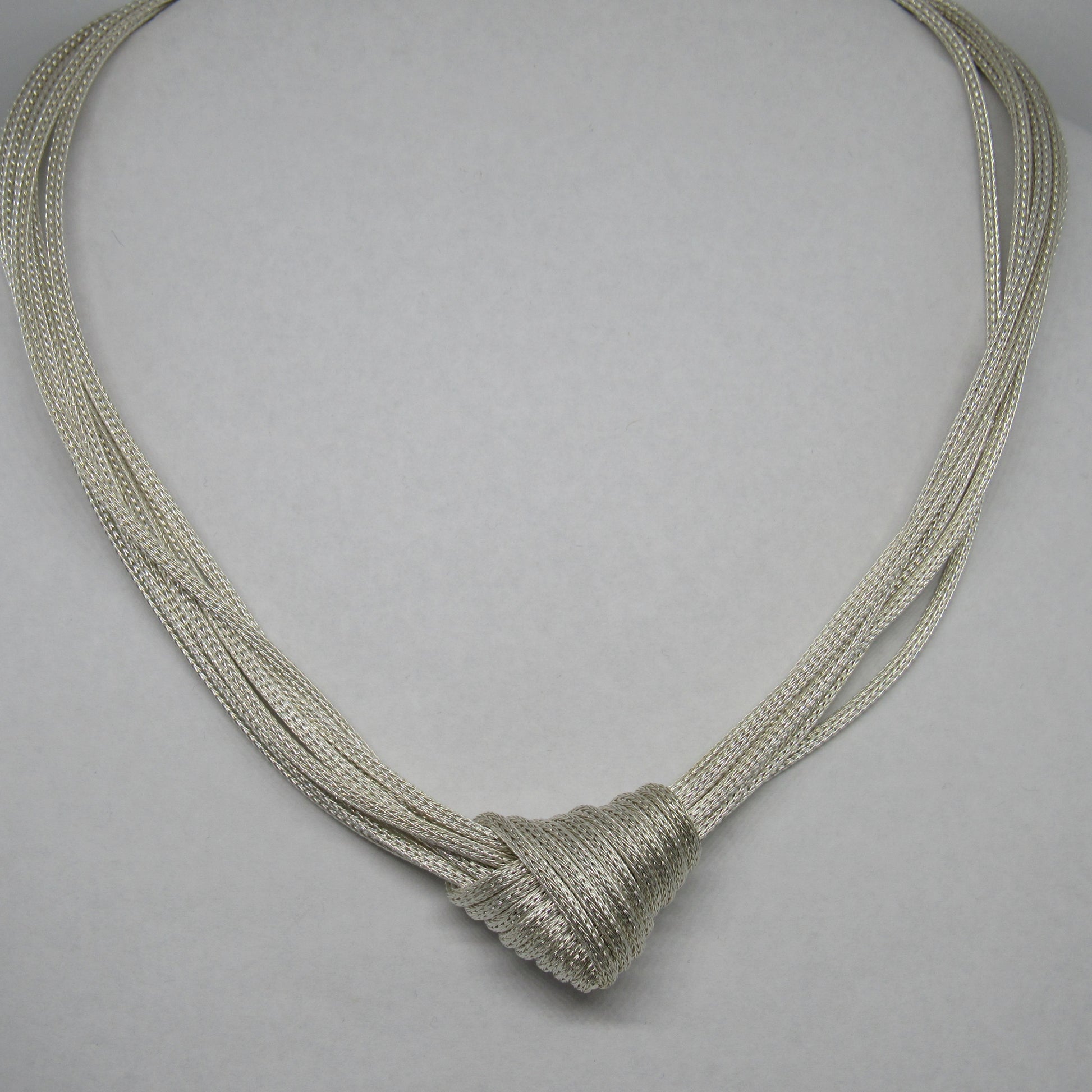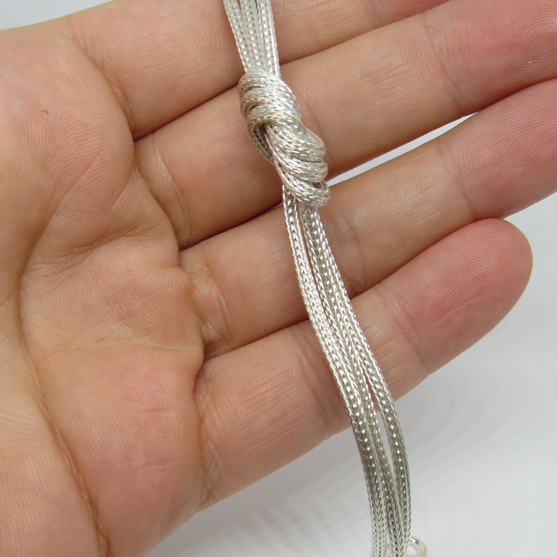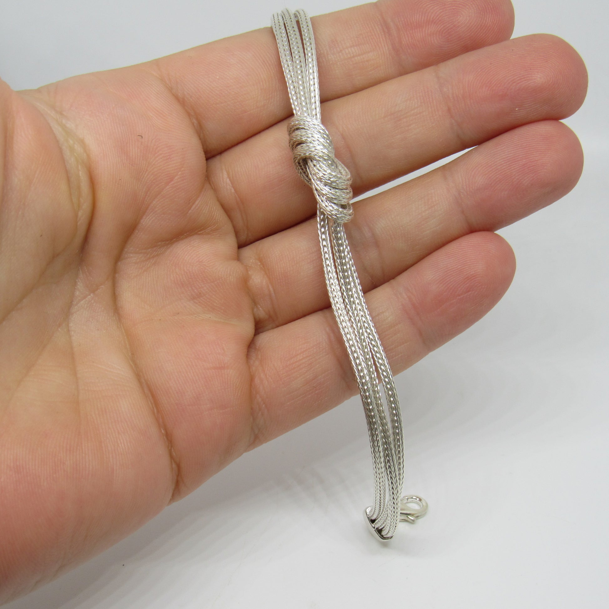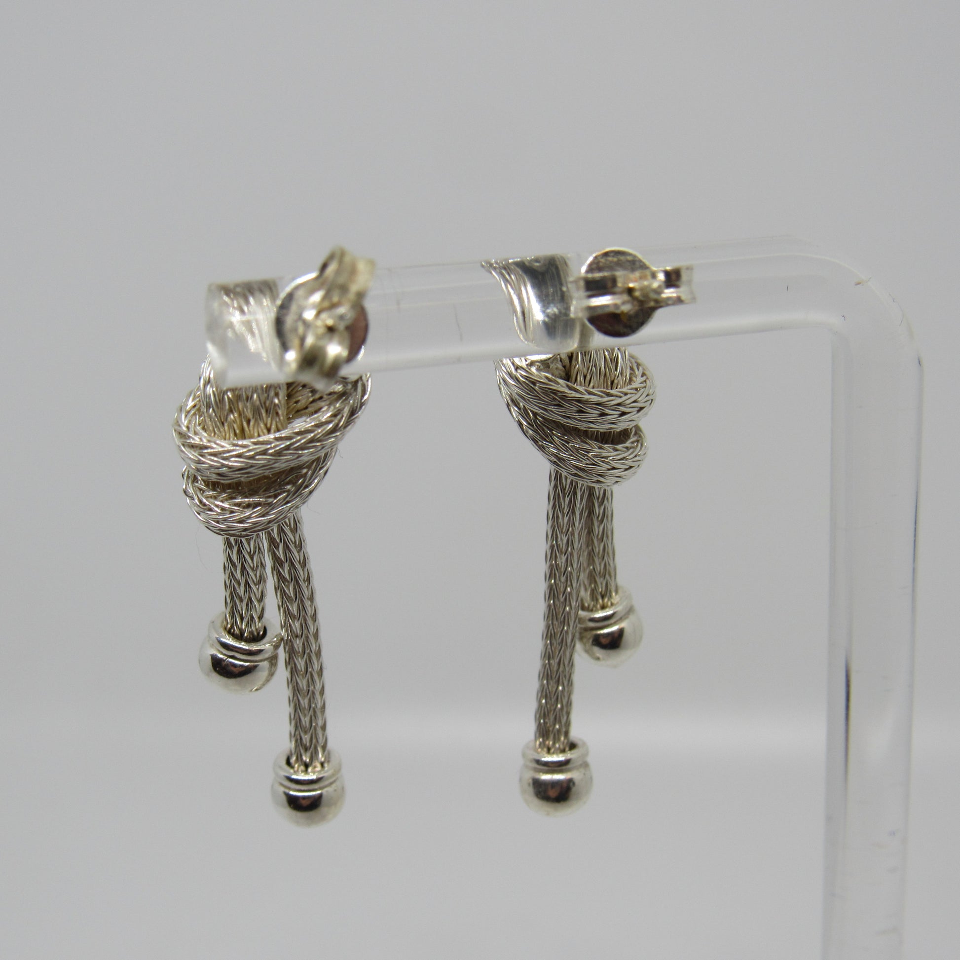 Italian Sterling Silver Top Knot Necklace w/ Matching Bracelet & Earrings - 16 in, 7 in, 1.25 in