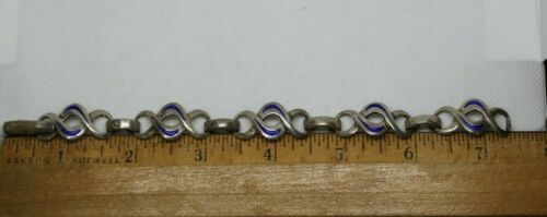 Italy 925 Sterling Silver Blue Enamel Openwork Swirl Infinity Link Bracelet 7.5"