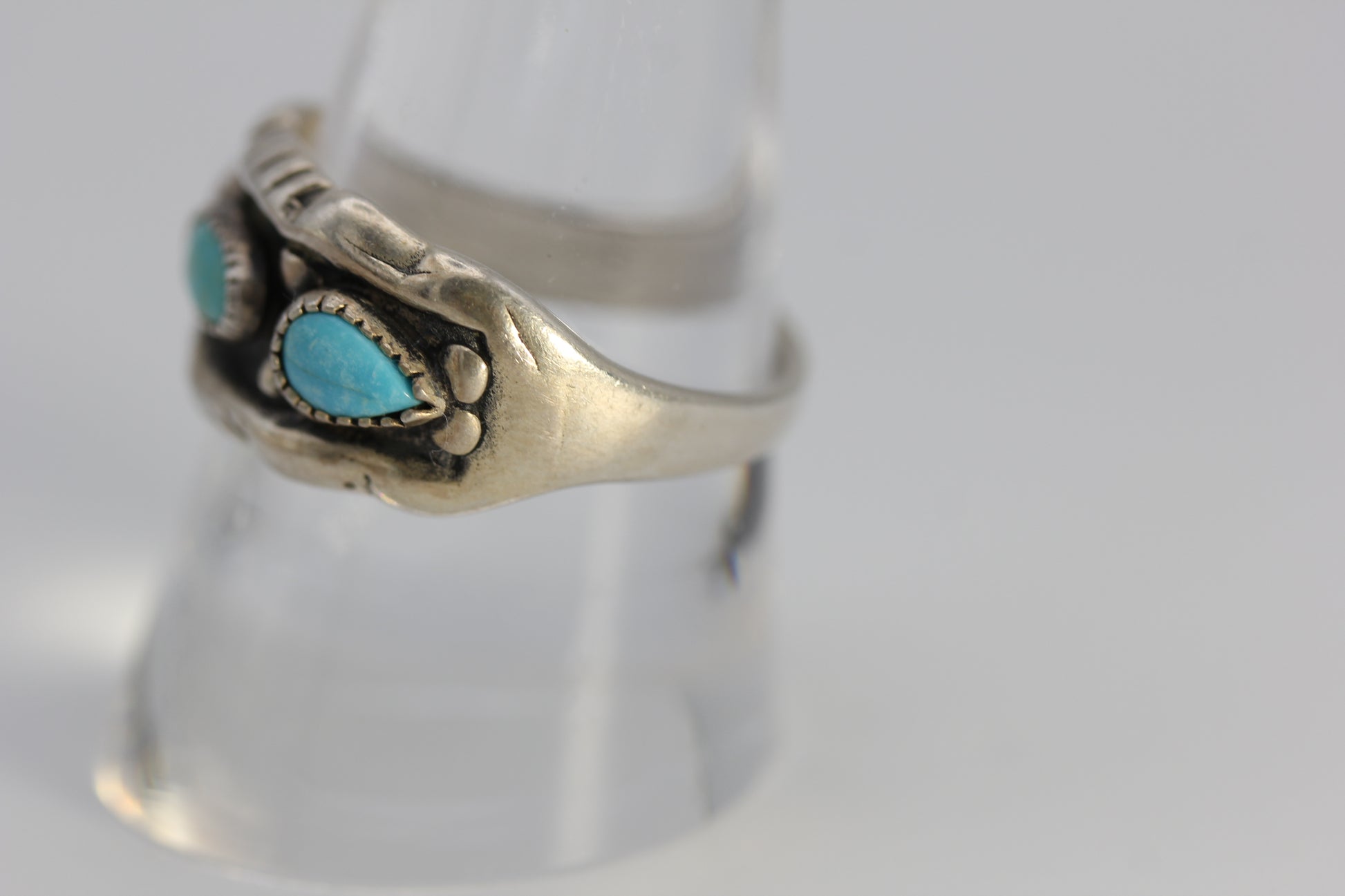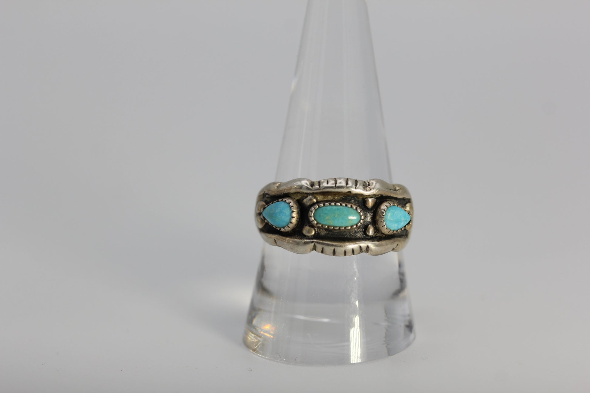 Johnny Pitchlynn Choctaw Signed 925 Sterling Turquoise Band Ring - 5.7 g Size 9.75