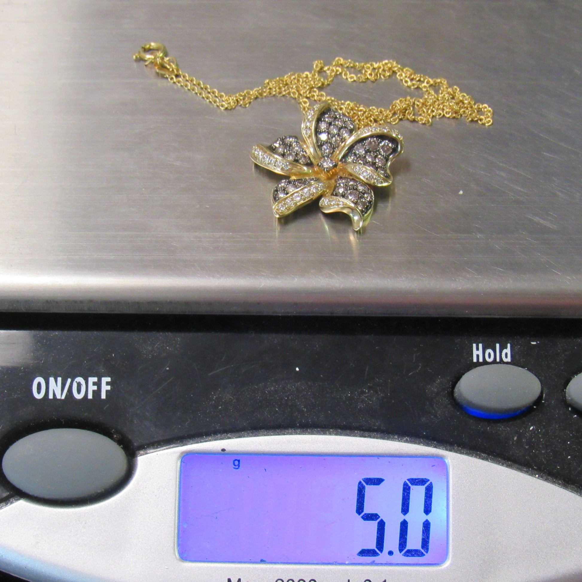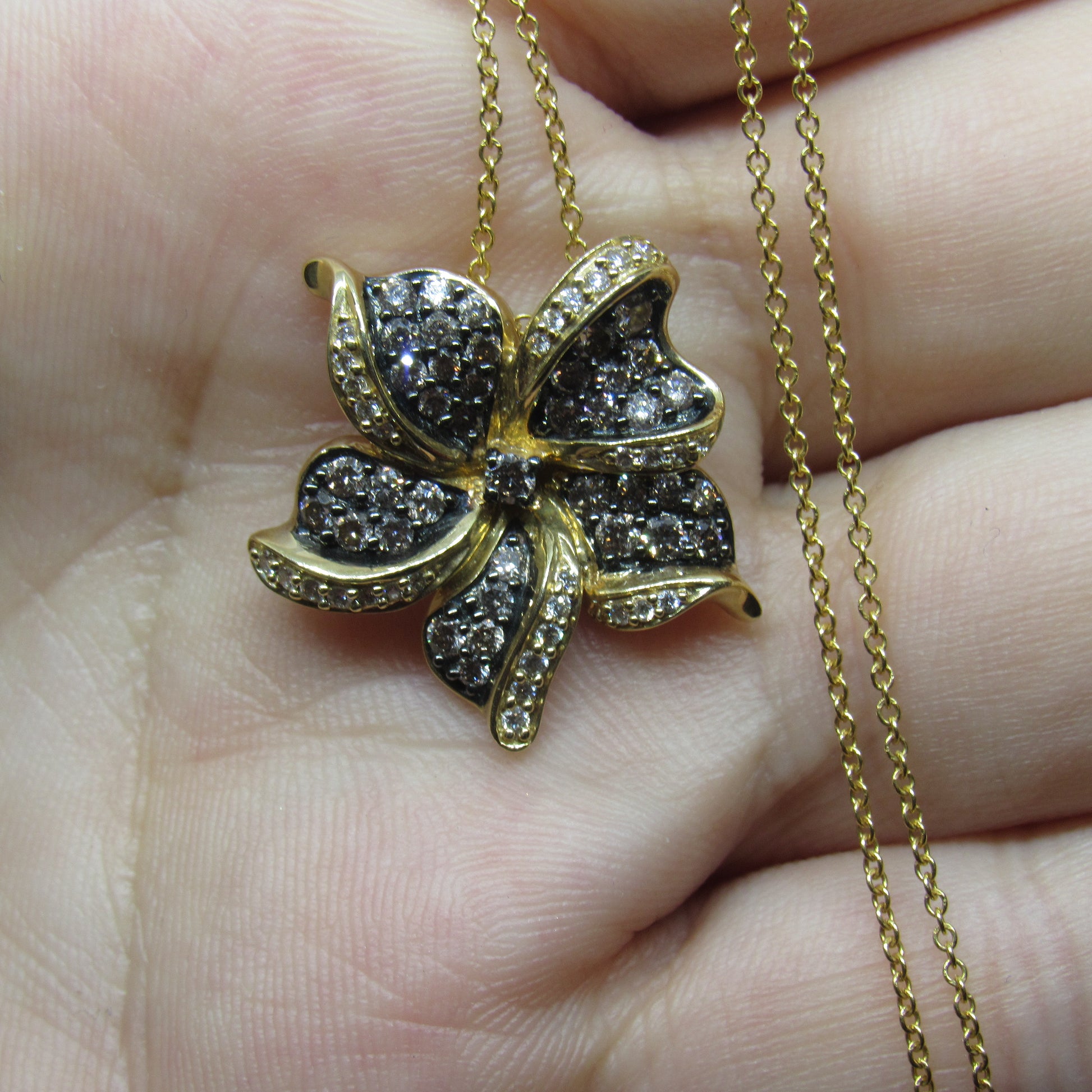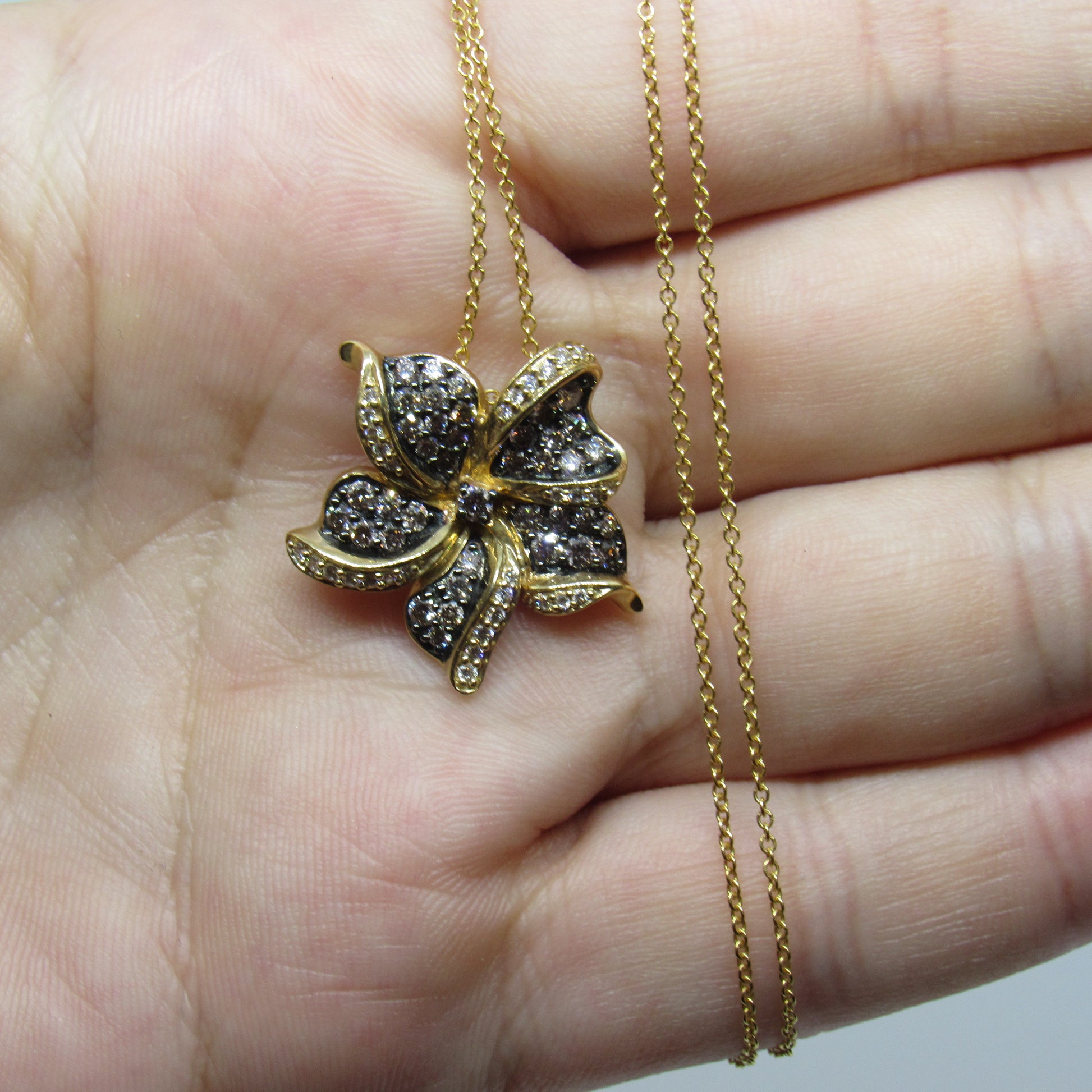 LeVian 14k Chocolate & White Diamond Flower Pendant Necklace - 18 in