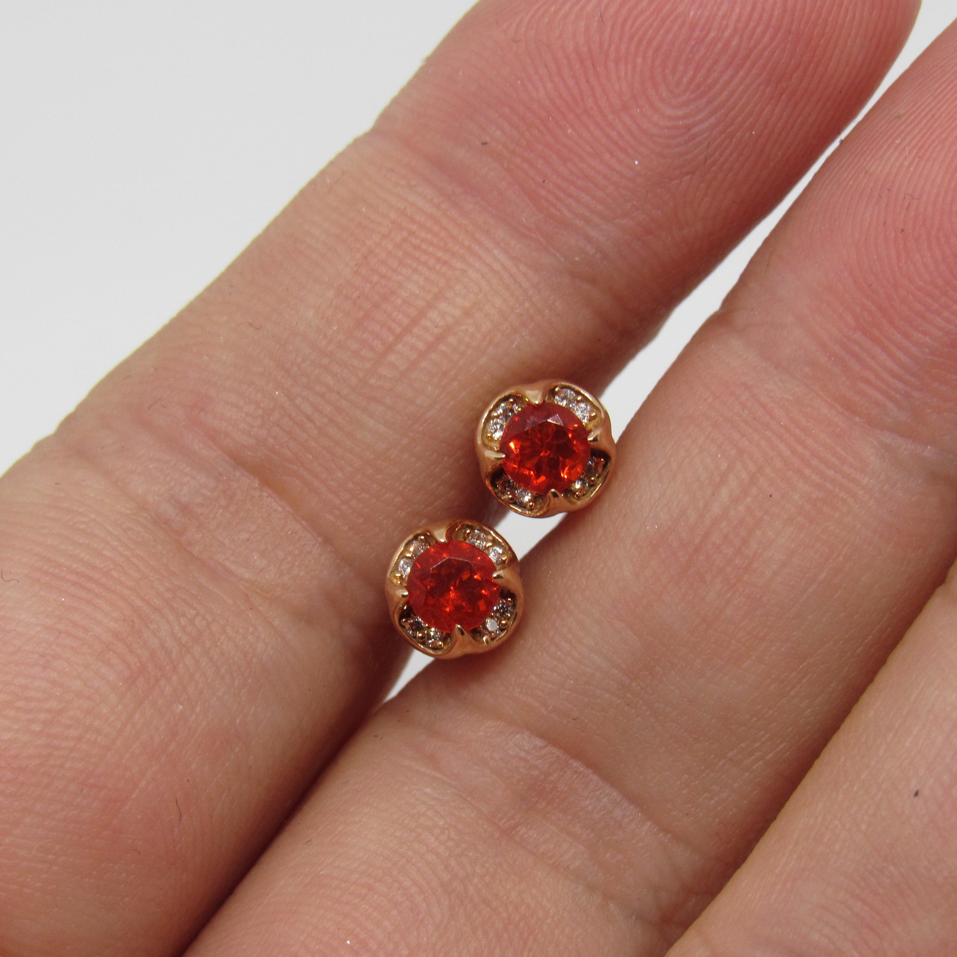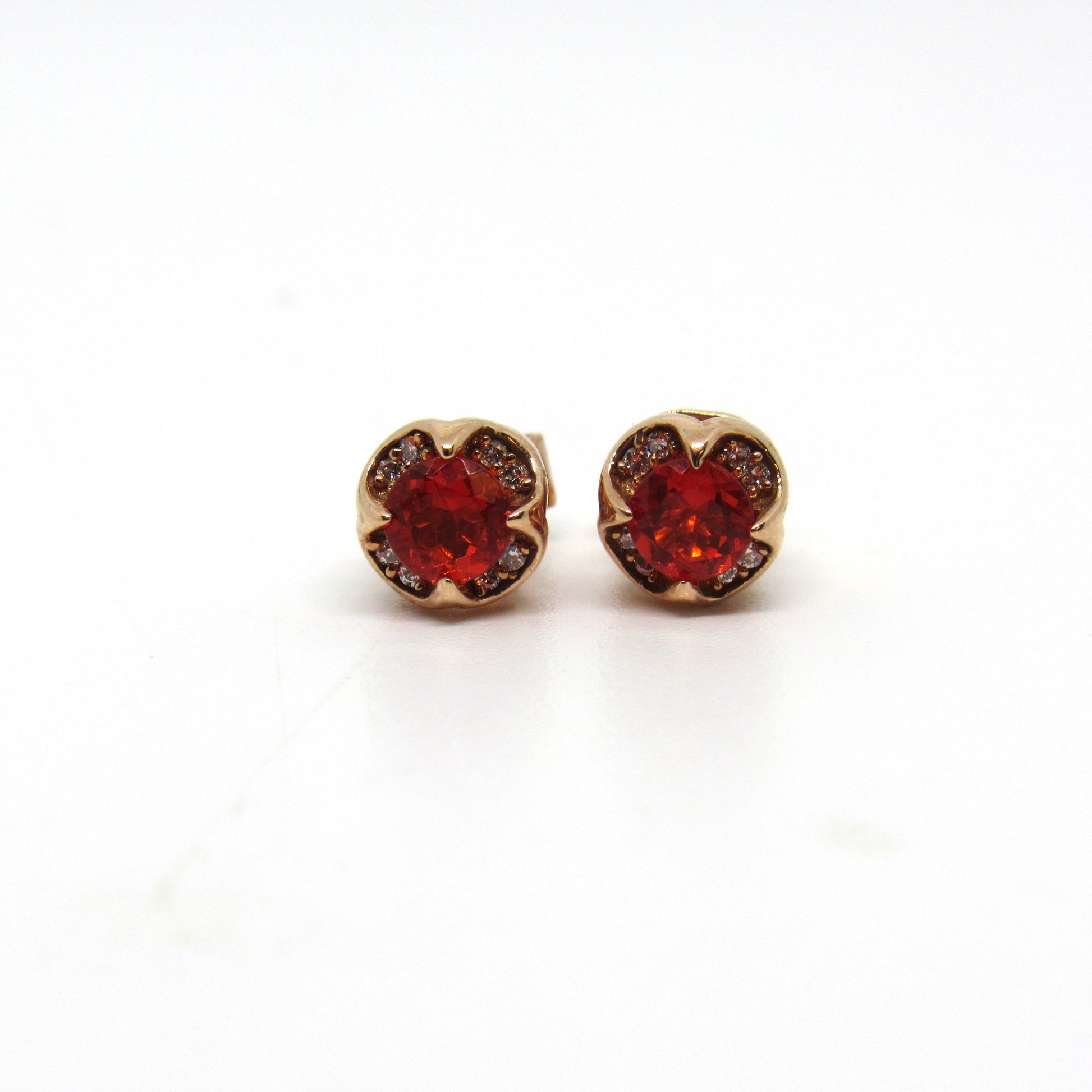 LeVian 14K Rose Gold Fire Opal & Diamond Stud Earrings