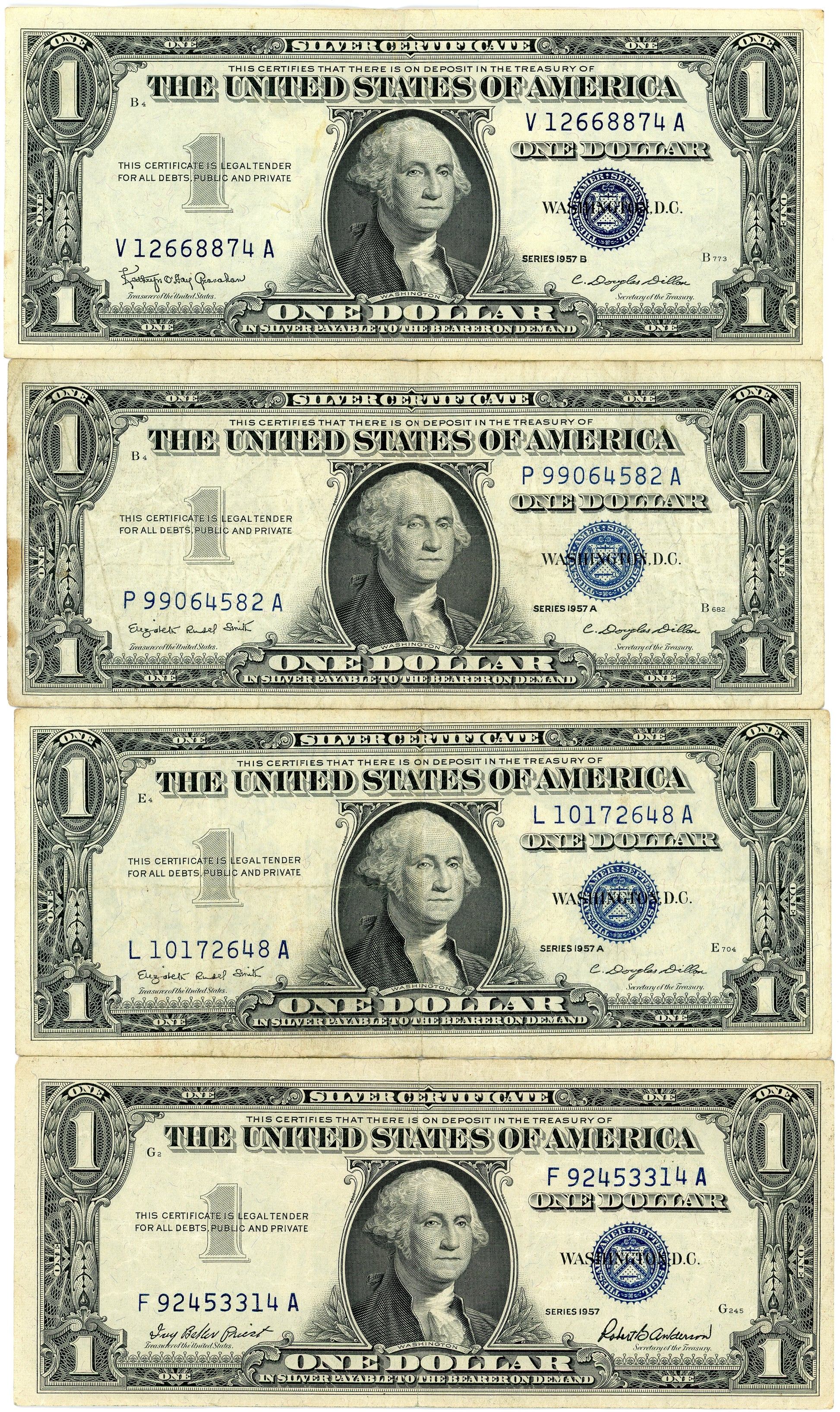Lot of 4 1957 $1 Silver Certificates Exact Bills Shown