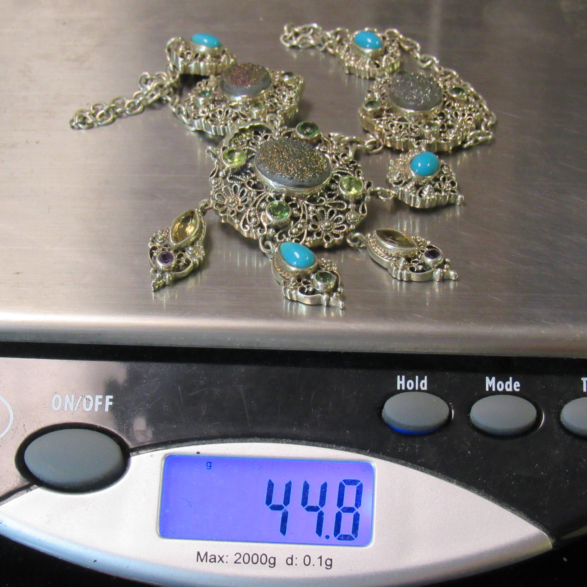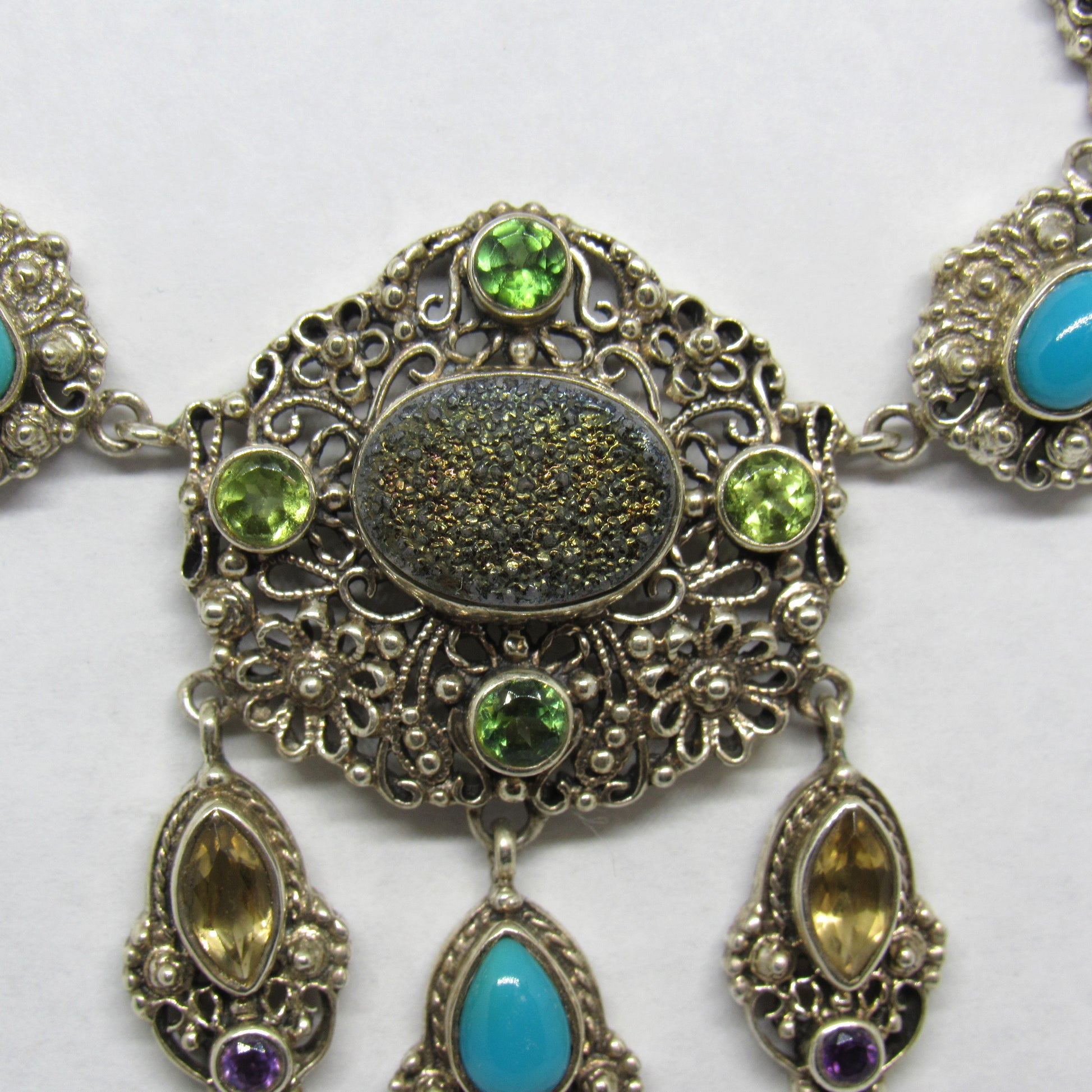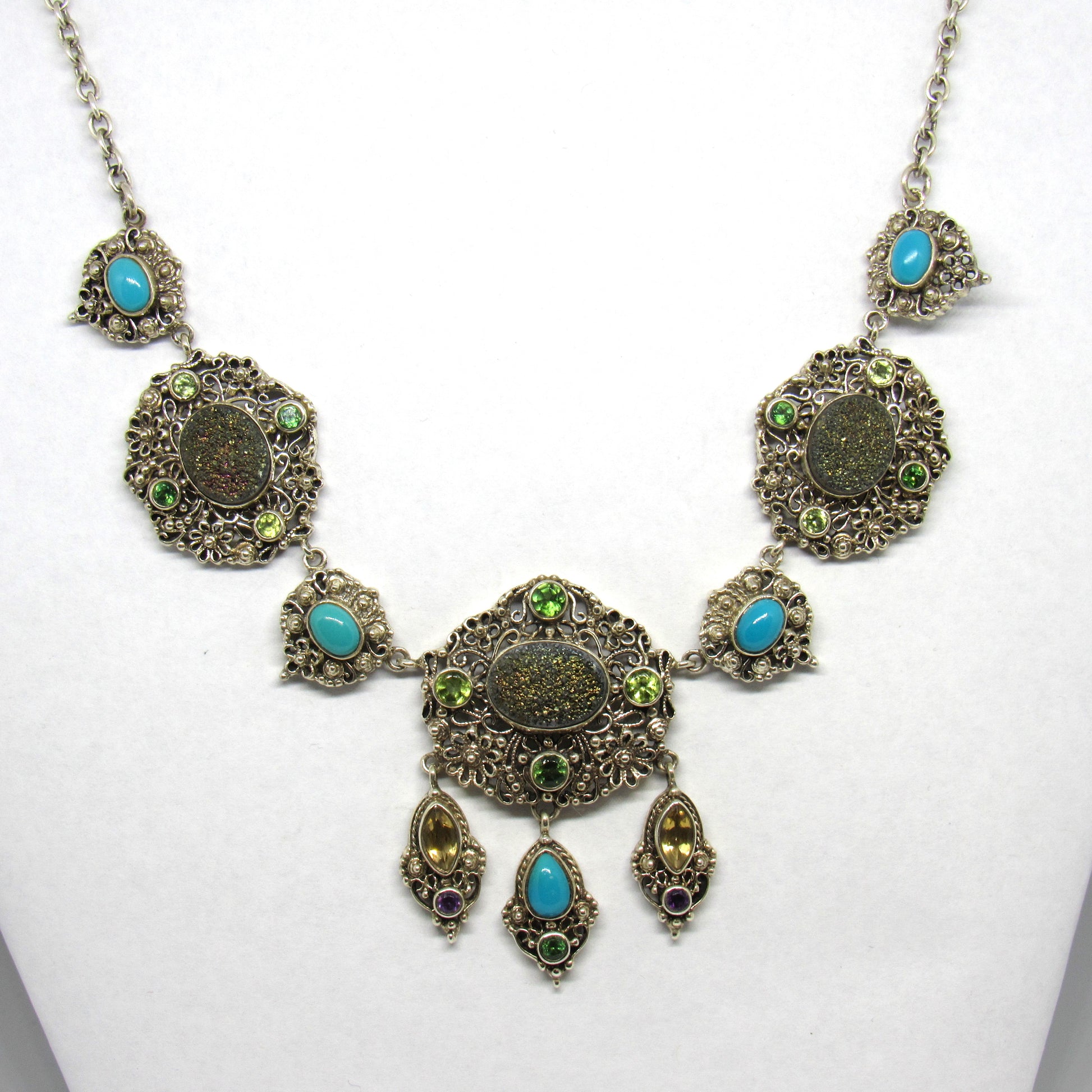 Nicky Butler Sterling 925 Multi Stone Turquoise Druzy Quartz Necklace - 20 in