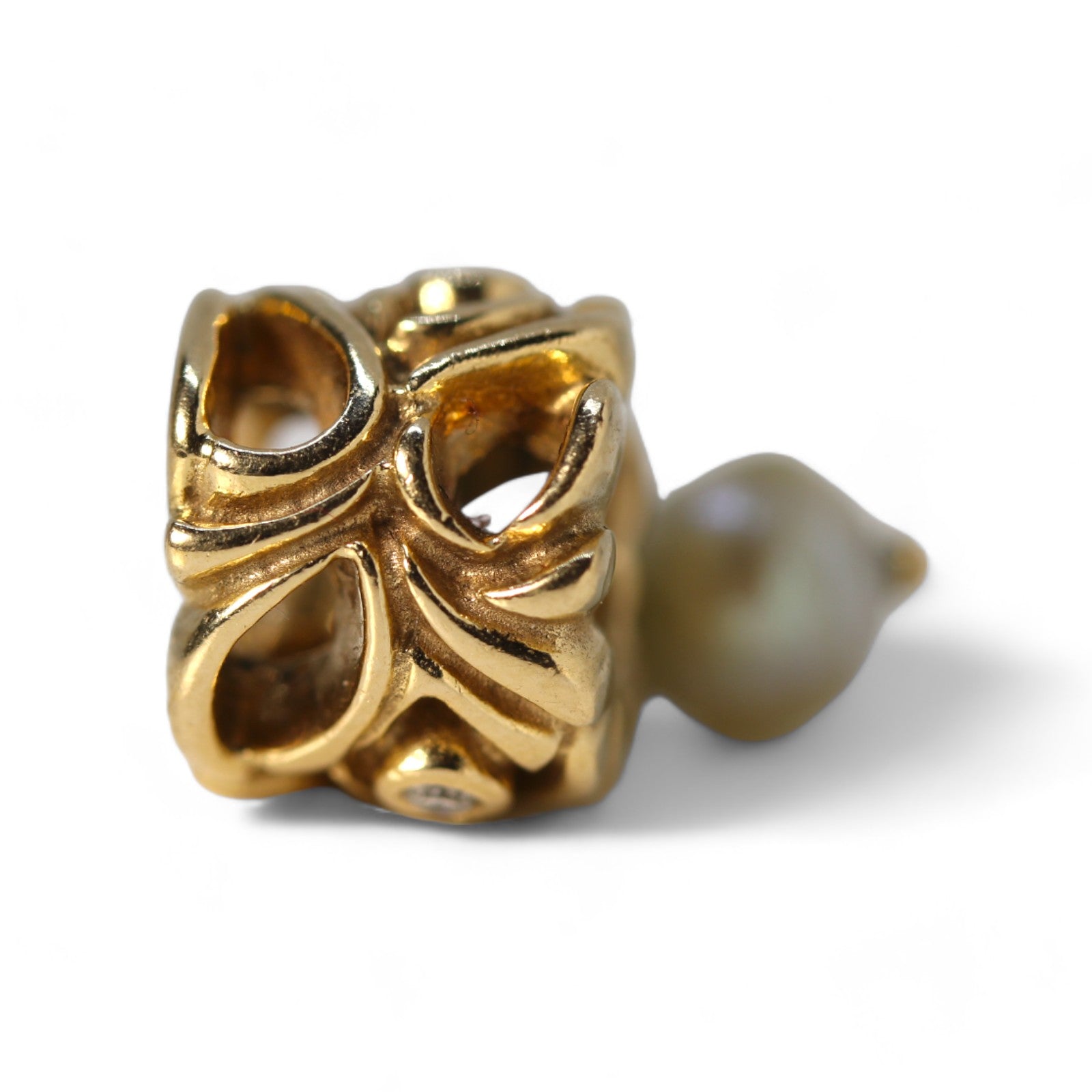 Pandora 14k Yellow Gold Secret Pearl Dangle with Diamonds #750460D