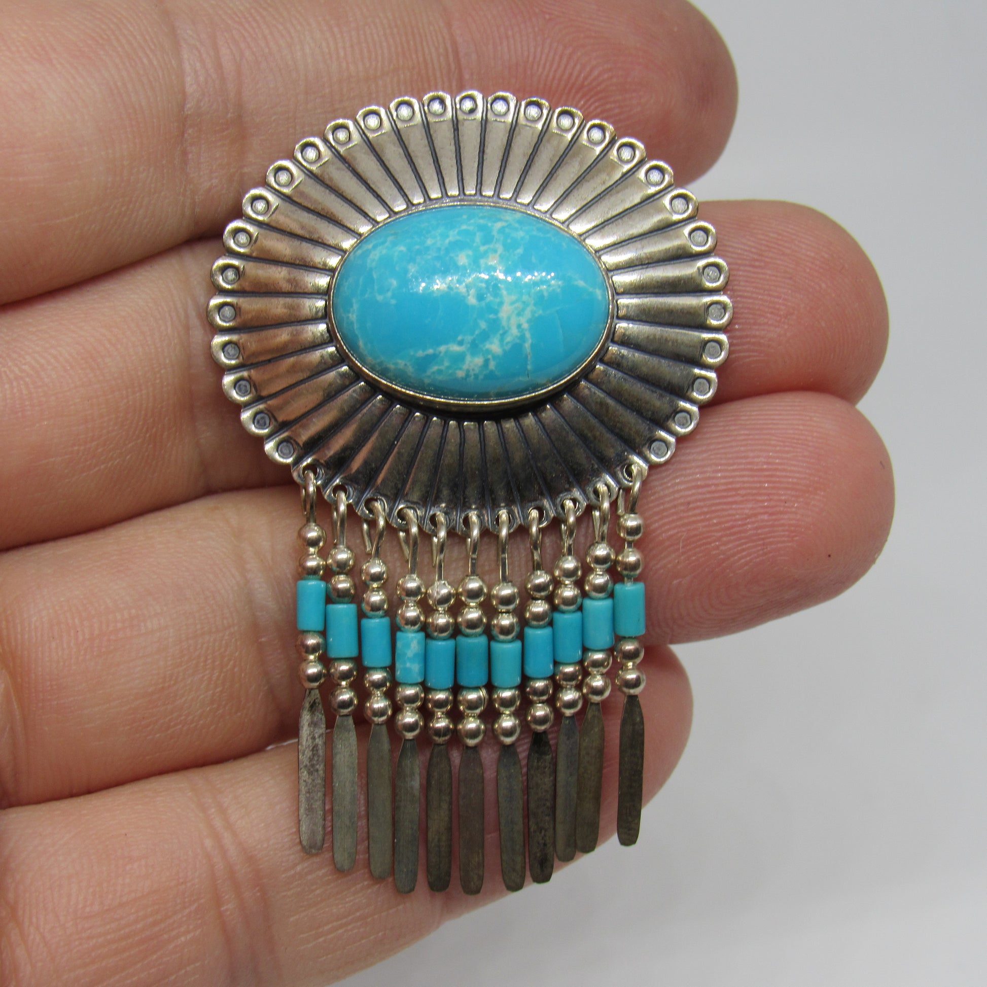 QT Quoc Southwestern Sterling Silver Oval Larimar Pendant or Brooch