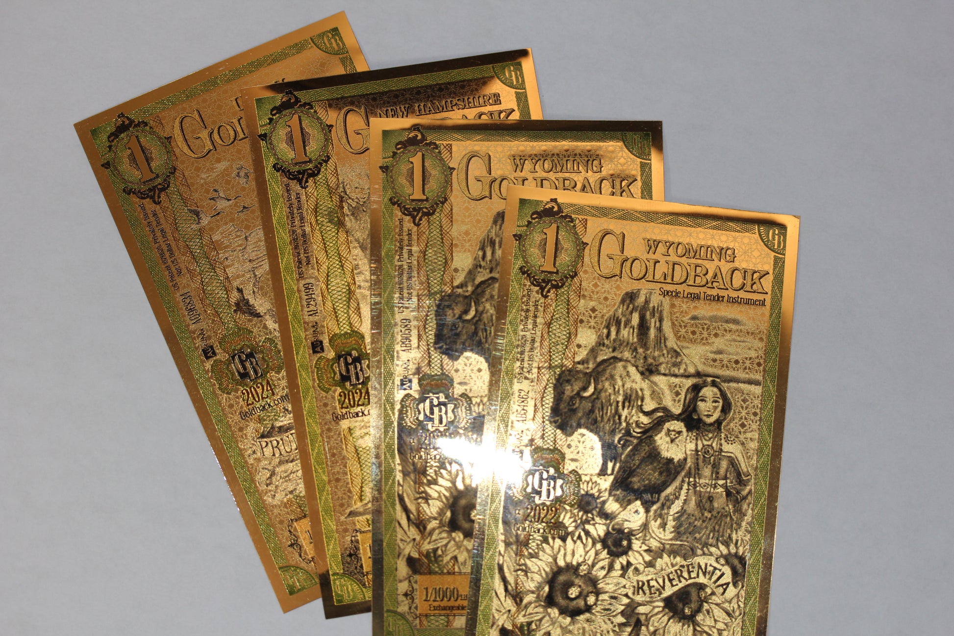 You will receive a random Goldback from those pictured. (New Hampshire, Wyoming, Utah)