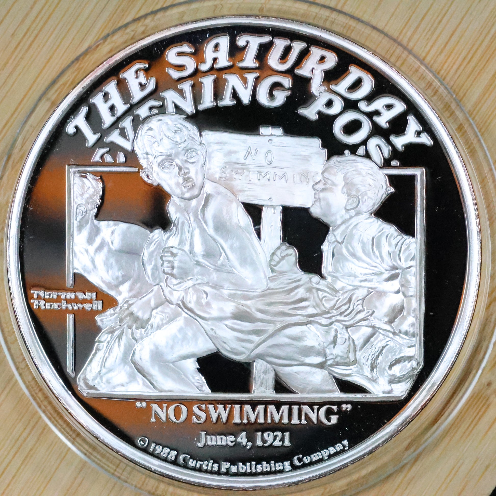 Saturday Evening Post Norman Rockwell "No Swimming" 5 oz .999 Fine Silver Round w/ Capsule
