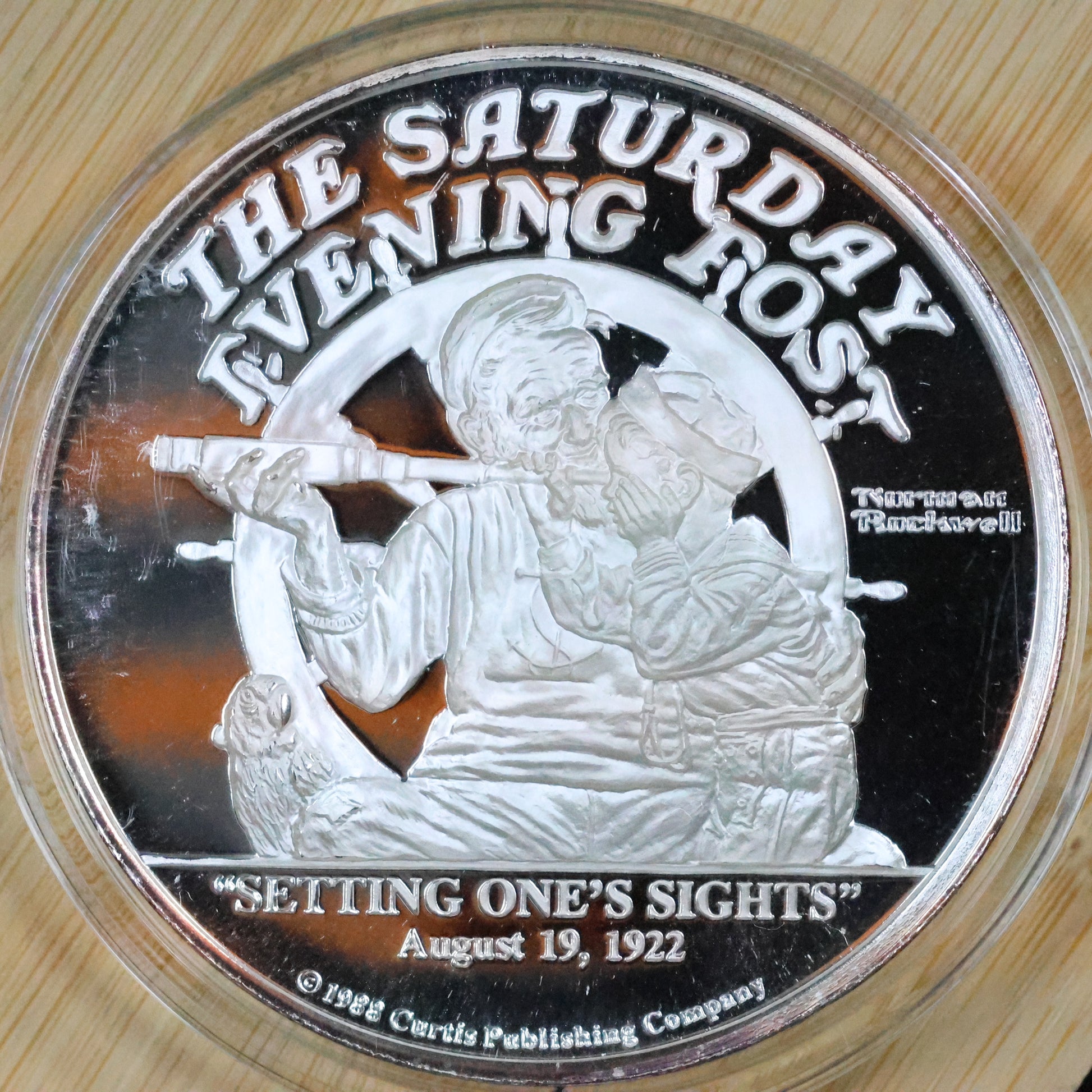Saturday Evening Post Norman Rockwell "Setting One's Sights" 5 oz .999 Fine Silver Round w/ Capsule