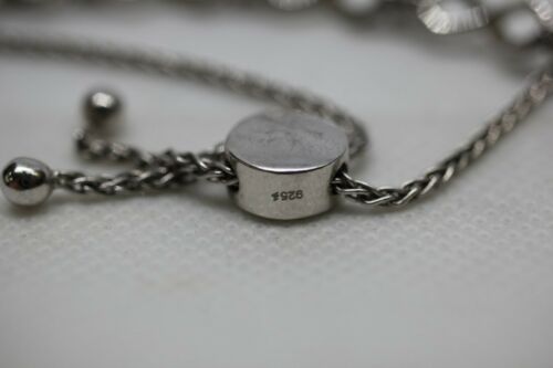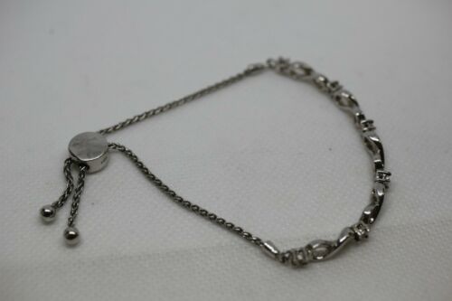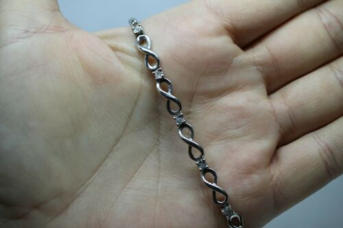 Sterling Silver 925 Adjustable Bolo Bracelet with Diamond Chips Infinity Symbols