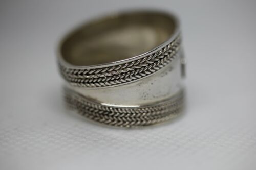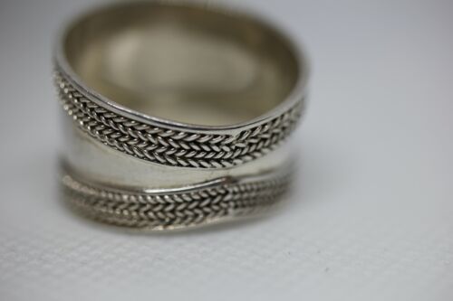 Sterling Silver 925 Boho Bohemian Braided Rope Swirl Wide Band Ring - Sz 12