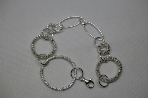 Sterling Silver 925 Bracelet Circle Oval Smooth & Textured Links - 7 inch